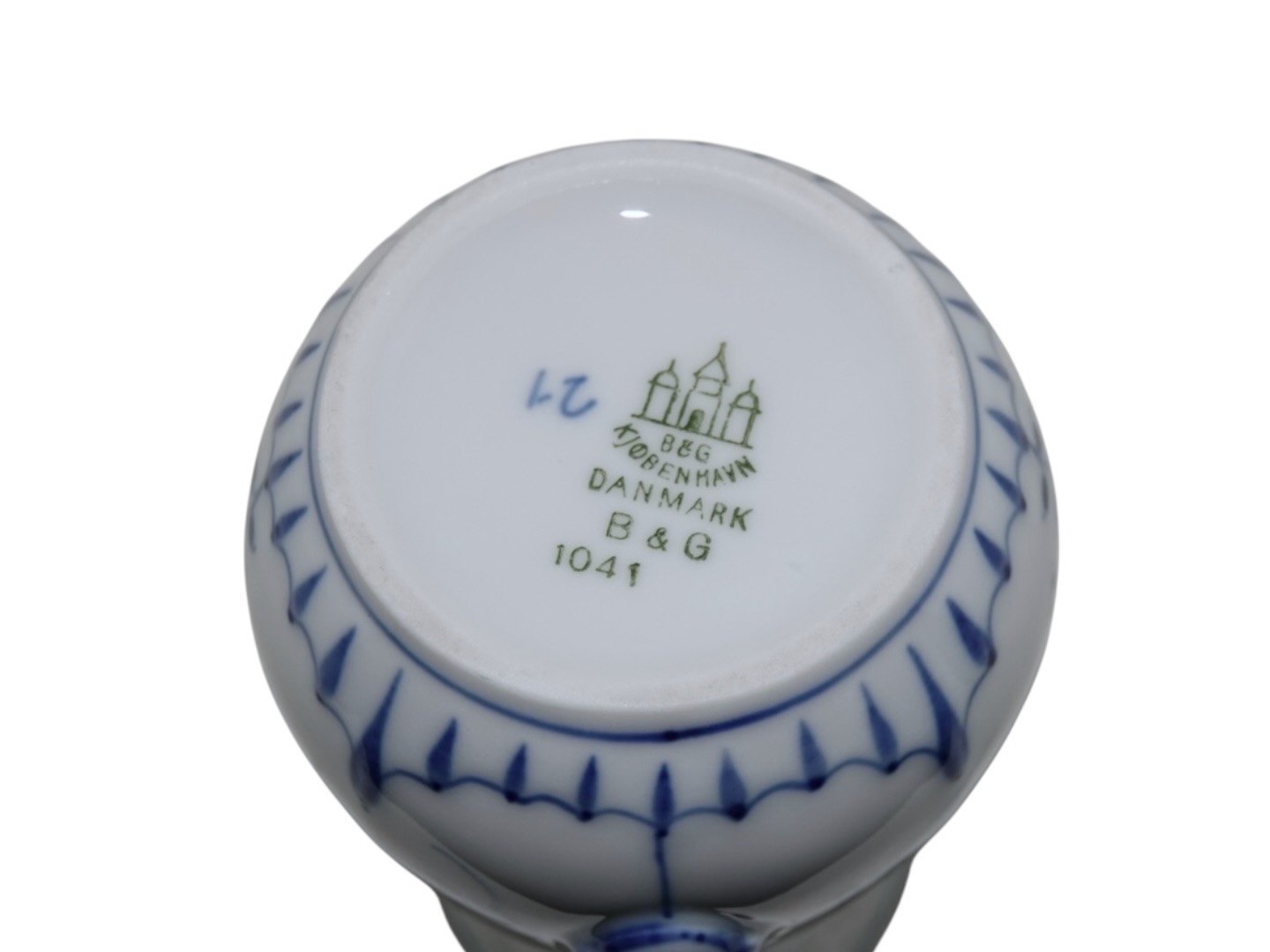 Beskrivelse: Bing & Grøndahl Blåmalet / Musselmalet tykt jernporcelæn med Riflet mønster, flødekande.
