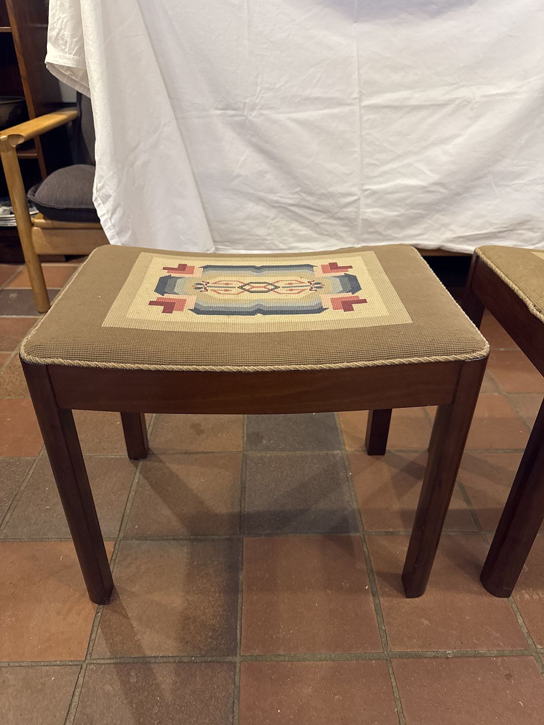Par taburetter i mahogni.