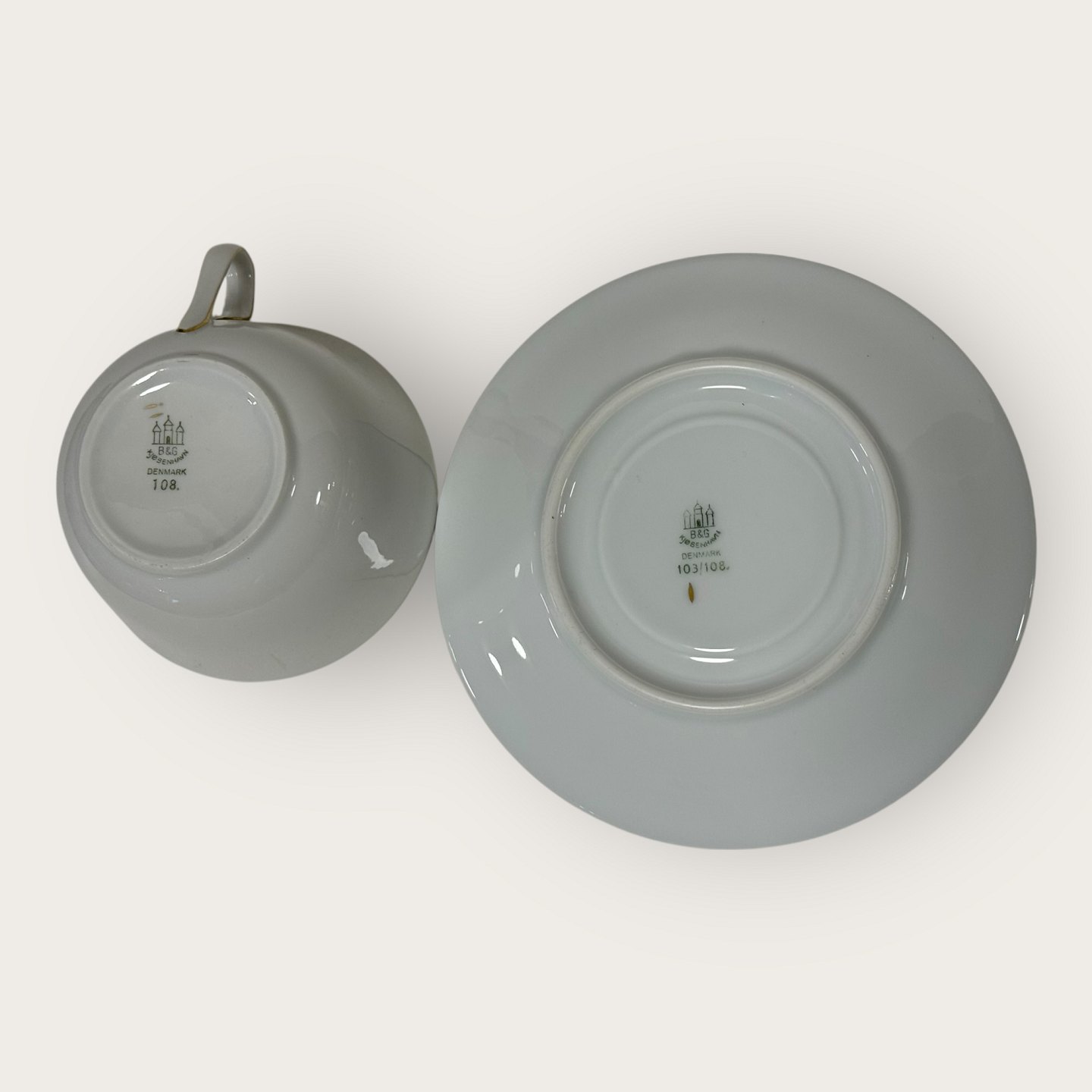 Beskrivelse: Bing & Grøndahl, Leda, Tekop sæt #108 Form 676, 5,5cm høj, 9,7cm i diameter, Design Ebbe Sadolin *Pæn stand*