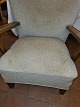 Beskrivelse: Dansk møbelsnedker overpolstret lænestol i uldstof m. stel af bejdset bøg.