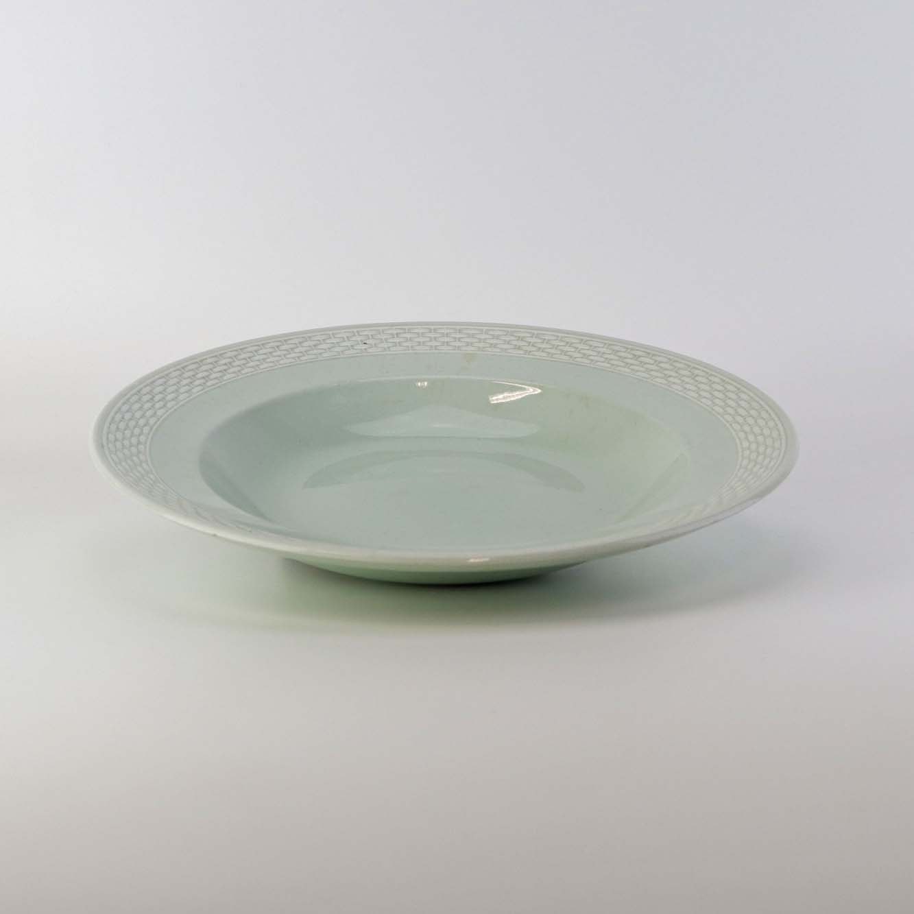 Beskrivelse: Dyb suppetallerken fra stellet Arresø, som blev fremstillet i perioden 1933-1967