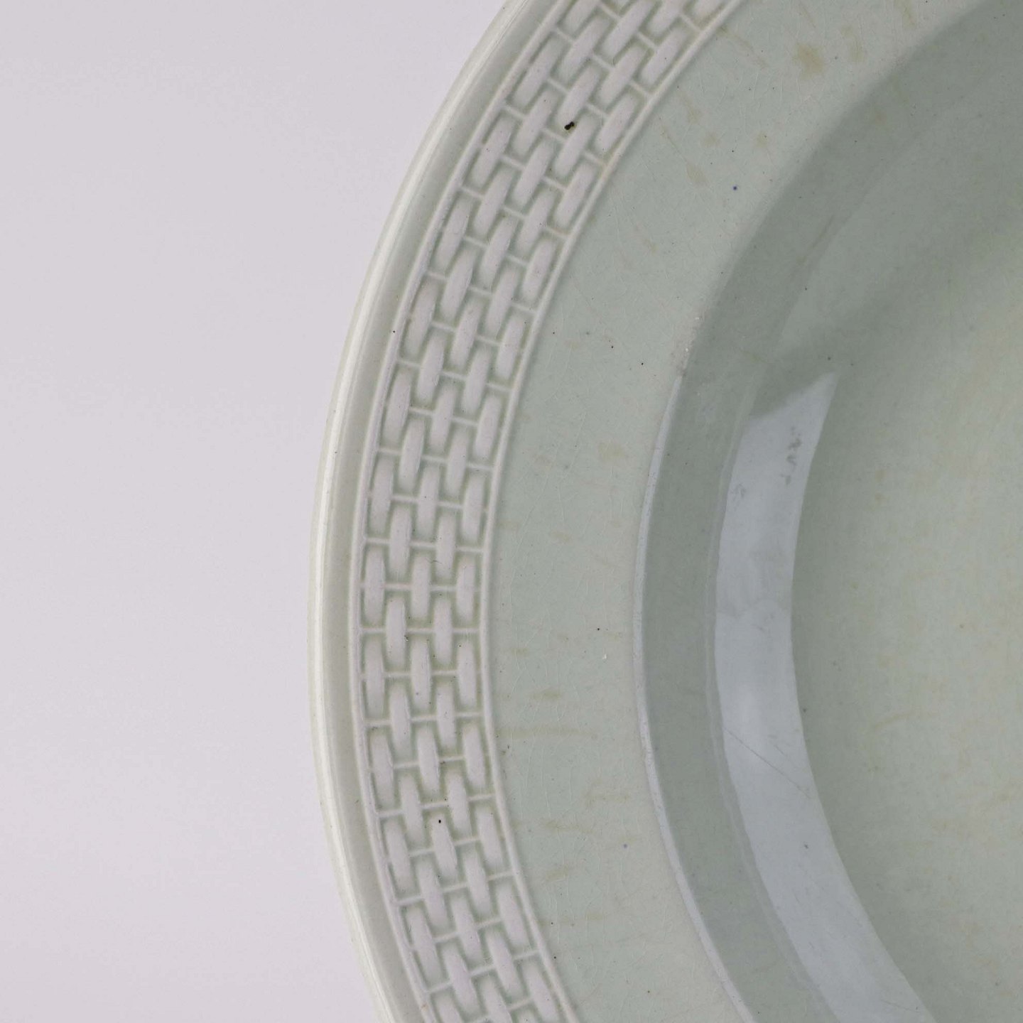 Fajancestel i stelform Viktoria II med fletværk i en lys mintgrøn farve med flettet dekoration langs kanten.