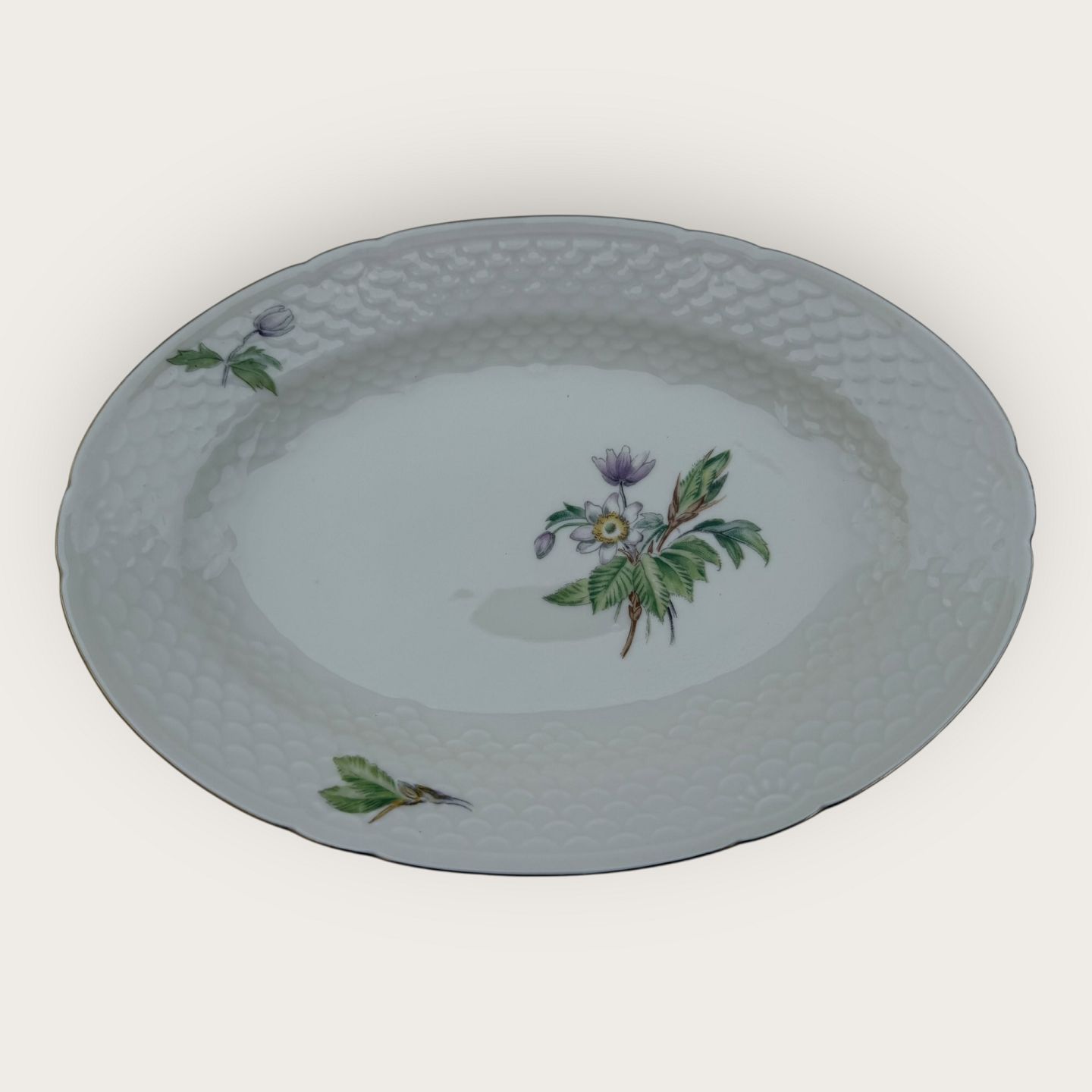 Beskrivelse: Bing & Grøndahl, Frigga, Anemone, # 18, lille serveringsfad, Mål: 25x17,5cm, 1. sortering *Pæn stand*