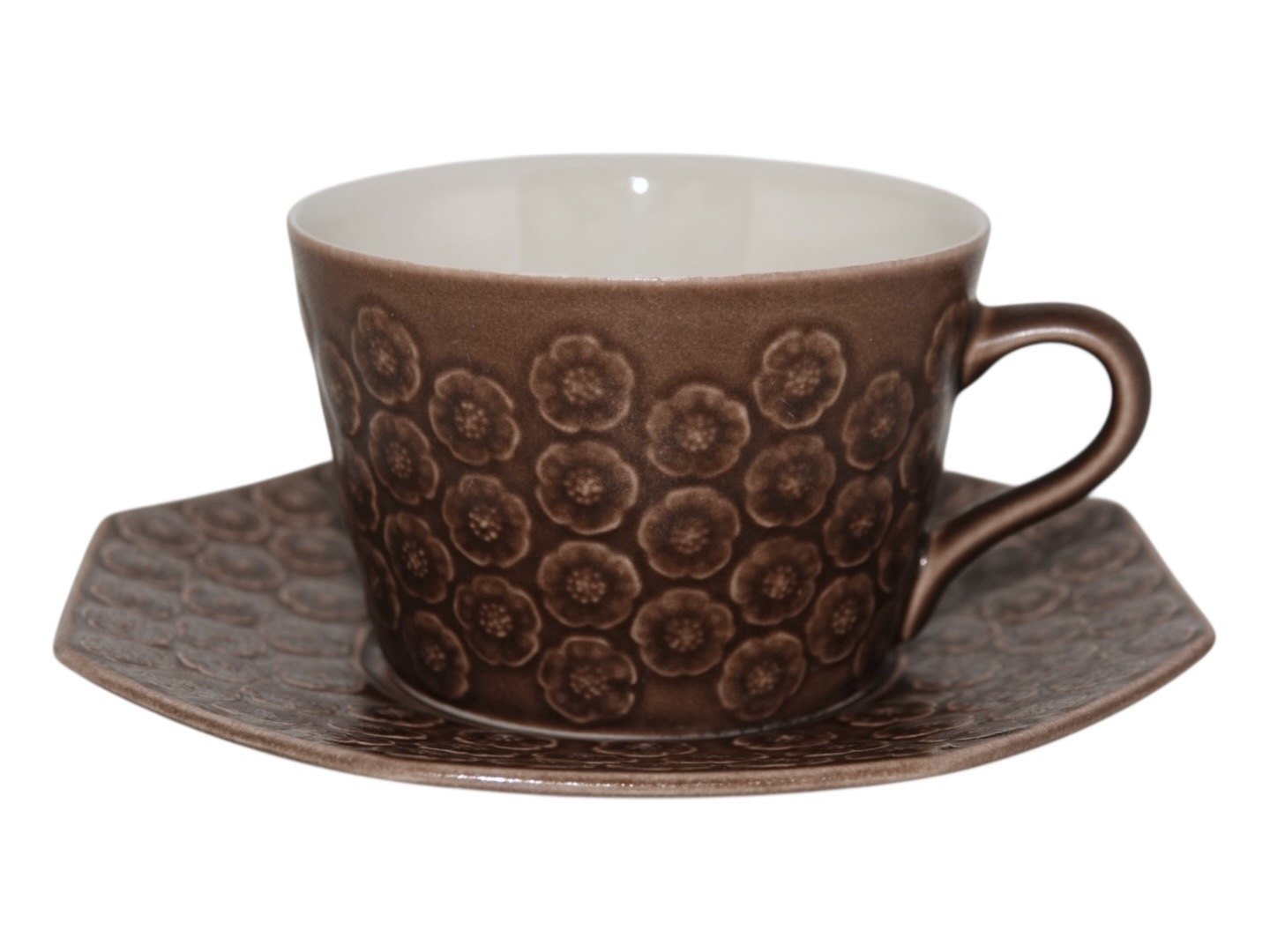 Beskrivelse: Kronjyden/Bing & Grøndahl Umbra stentøj, kop med underkop.