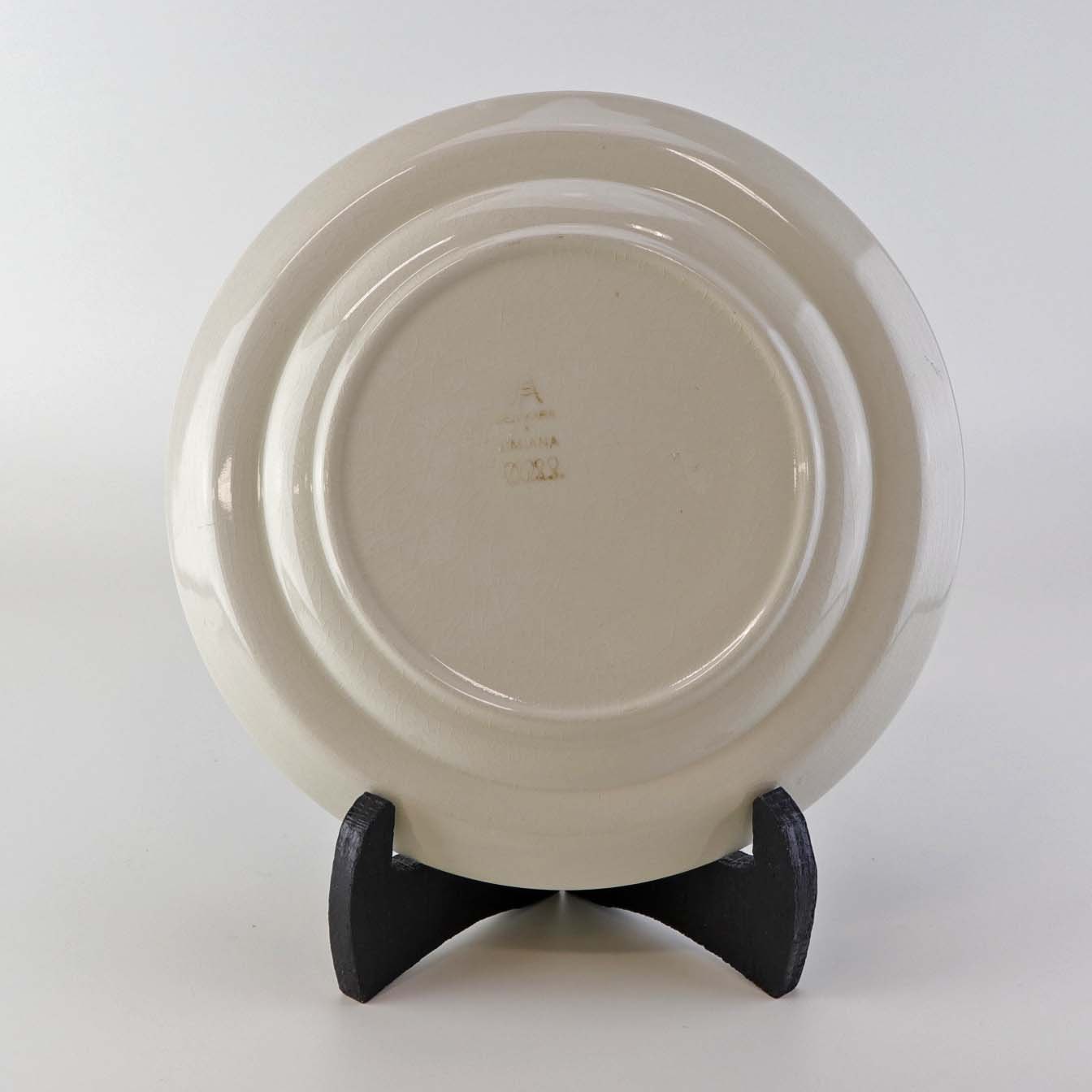 Beskrivelse: Desserttallerken i fajance fra stellet Timiana fremstillet i perioden 1960-1969