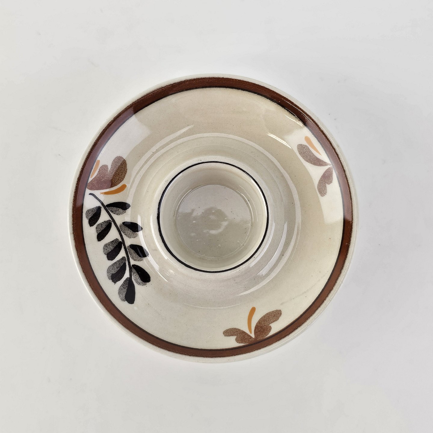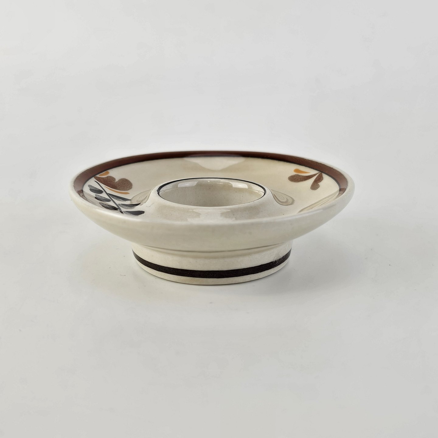 Beskrivelse: Rund lysestage i fajance fra stellet Knud