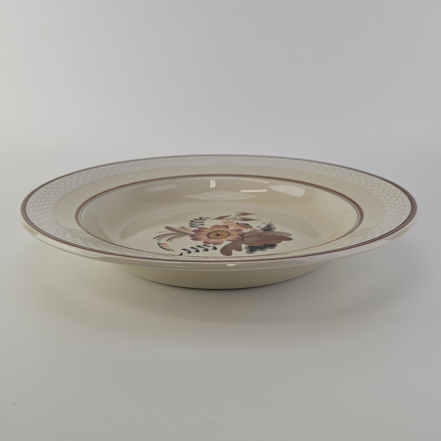 Beskrivelse: Dyb tallerken i fajance fra stellet Knud