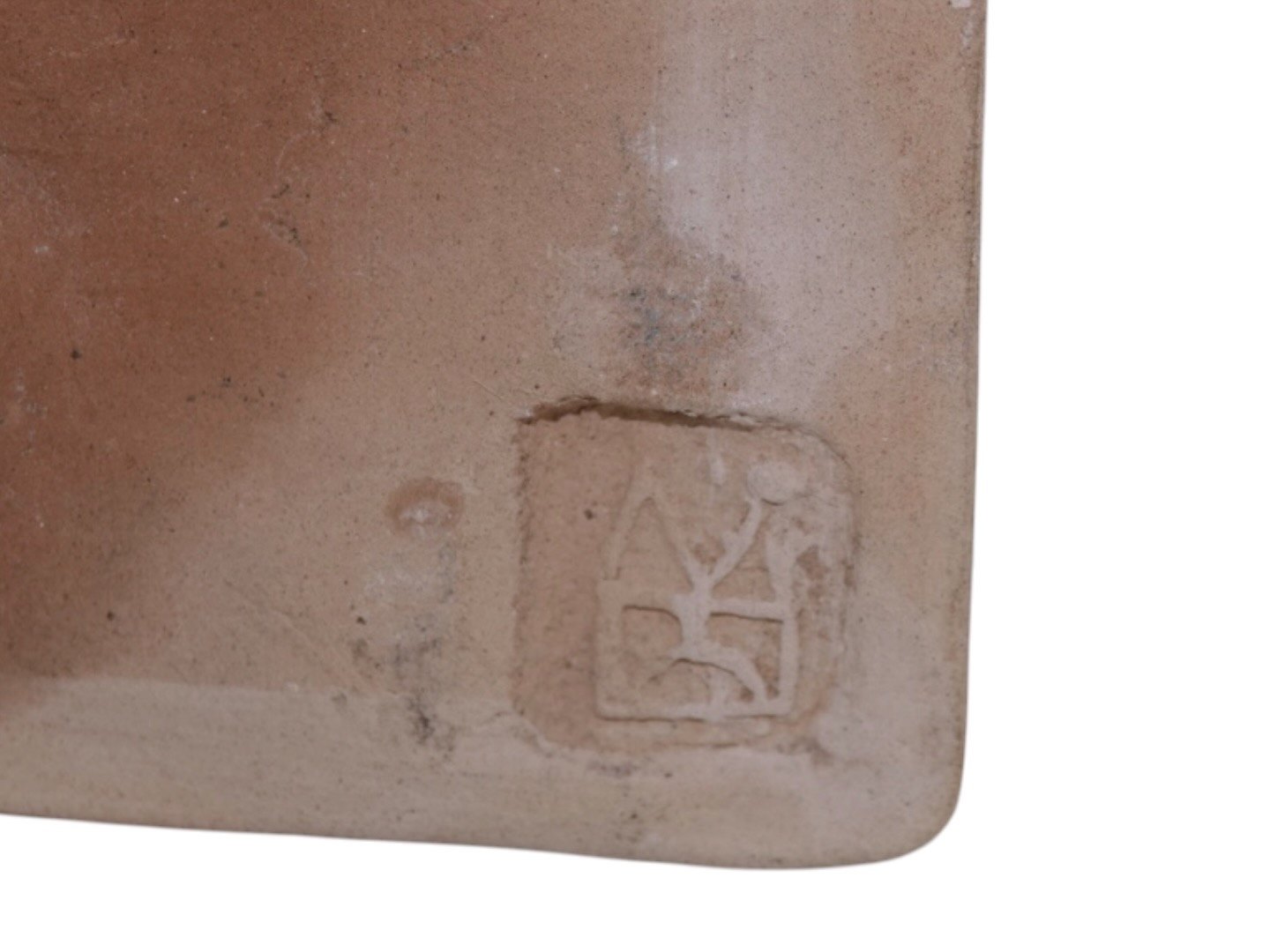 Beskrivelse: Doreen Middelboe keramik, lille firkantet plakette med en kat.