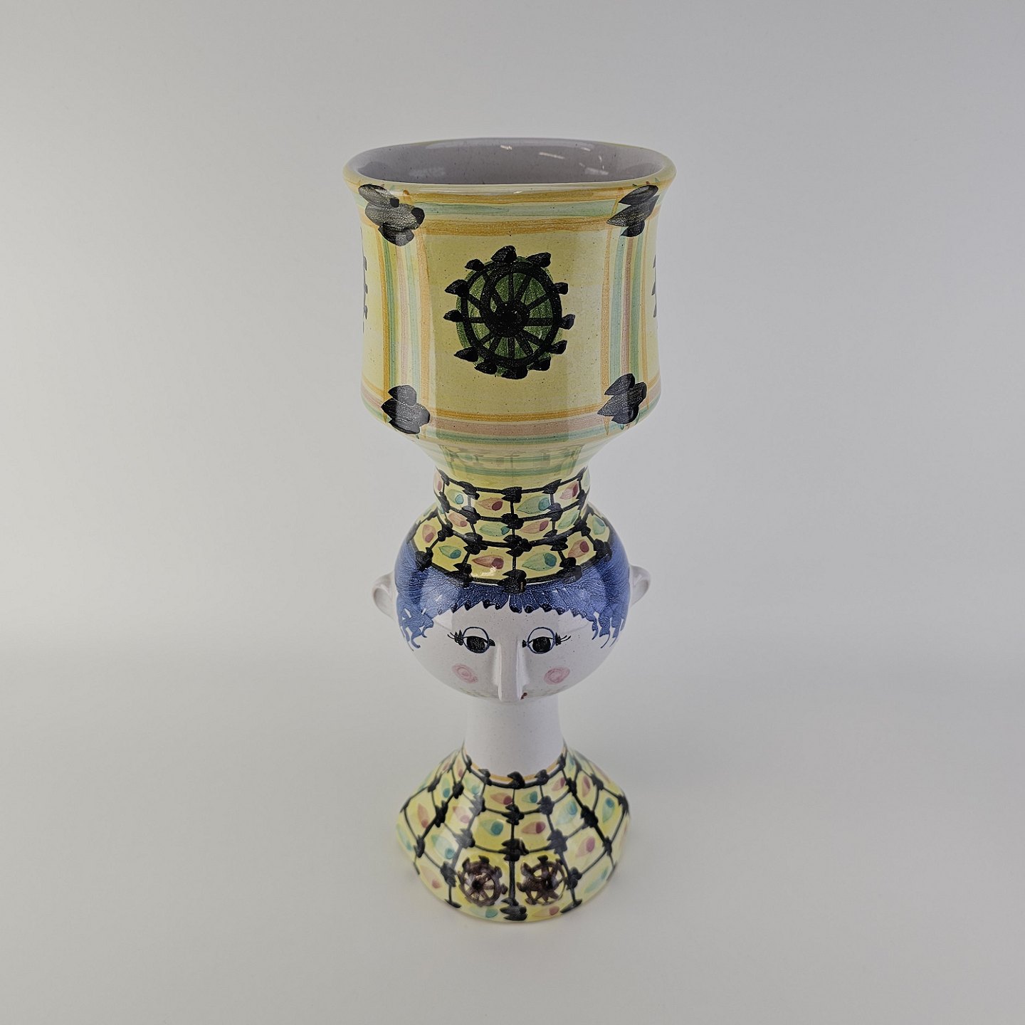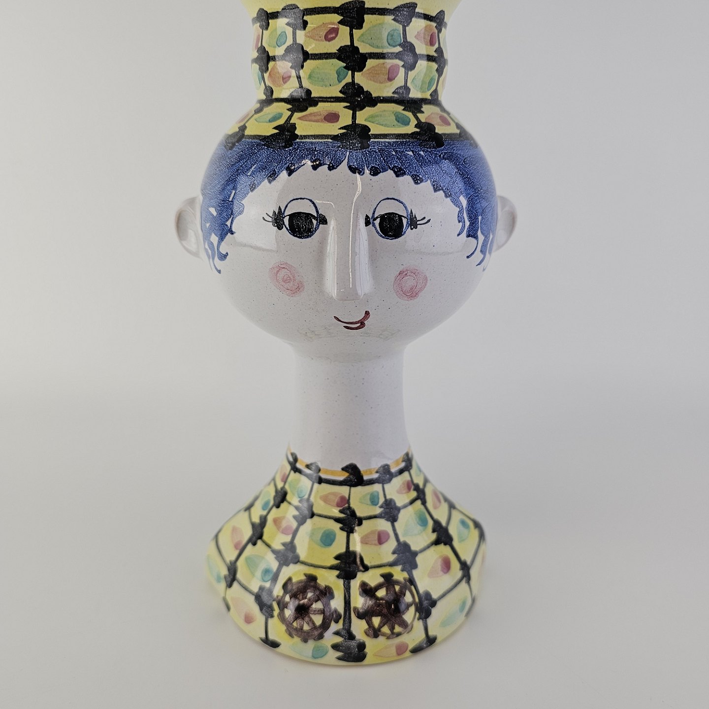 Beskrivelse: Håndmalet vase af porcelæn med motiv af et kvindehoved