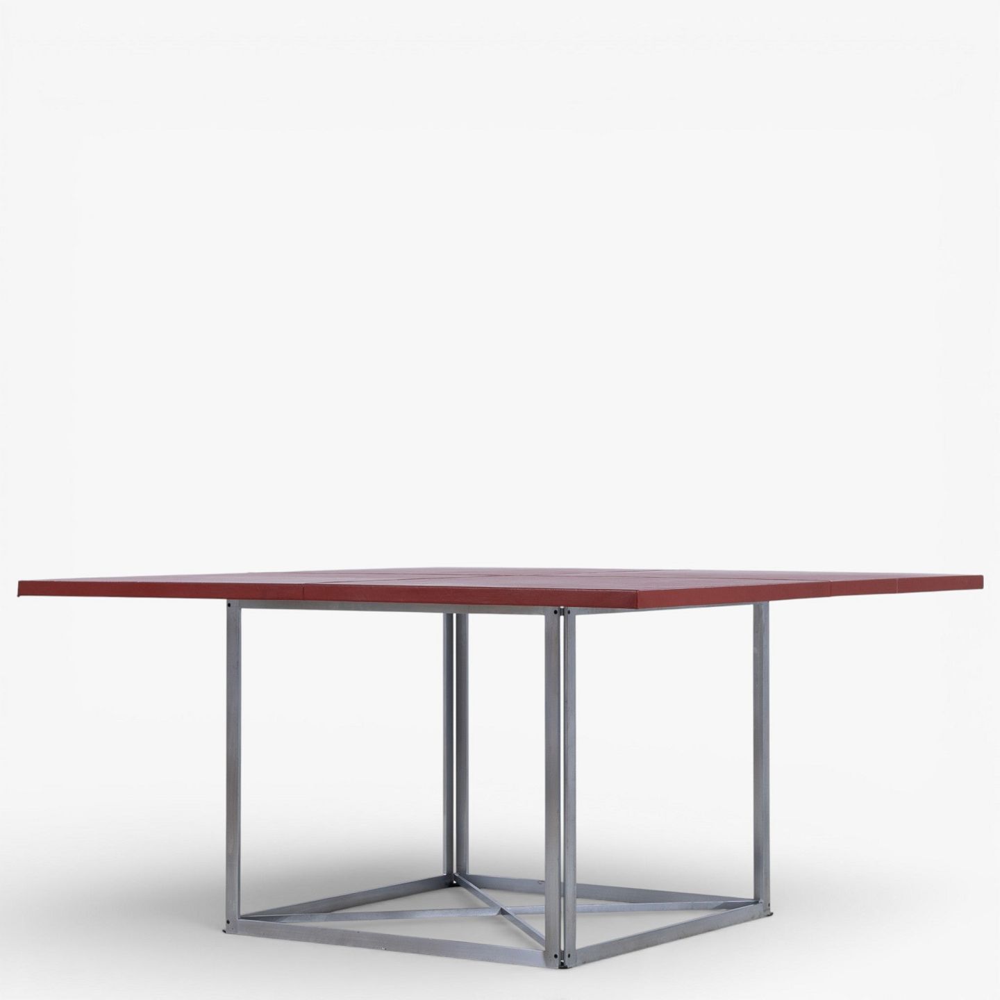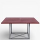 PK 40 - Kvadratisk spisebord med plade i rødt skind på stel i stål. Mærket fra producent.