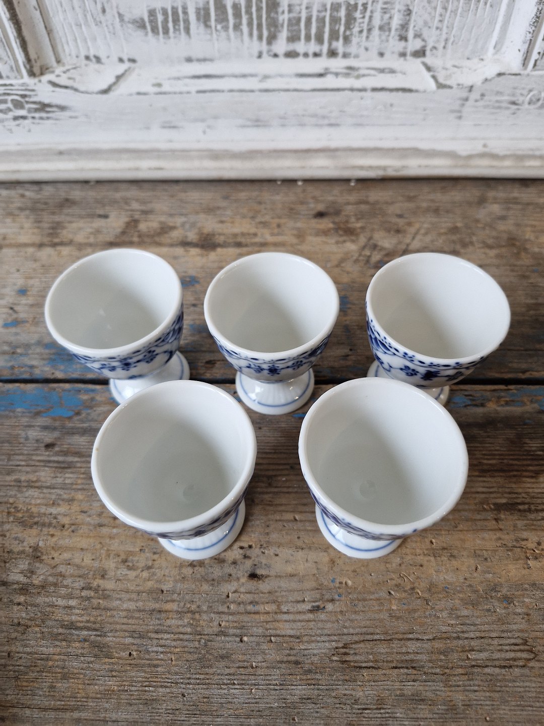 Beskrivelse: Royal Copenhagen Musselmalet halvblonde æggebæger