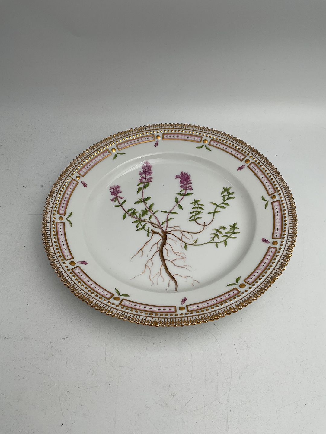 Beskrivelse: Royal Copenhagen Flora Danica Frokosttallerken No. 20/3550 Måler 22 cm. (8.66 inch) 1. Sortering. Latinsk navn: Thymus Chamaedrys Fr
