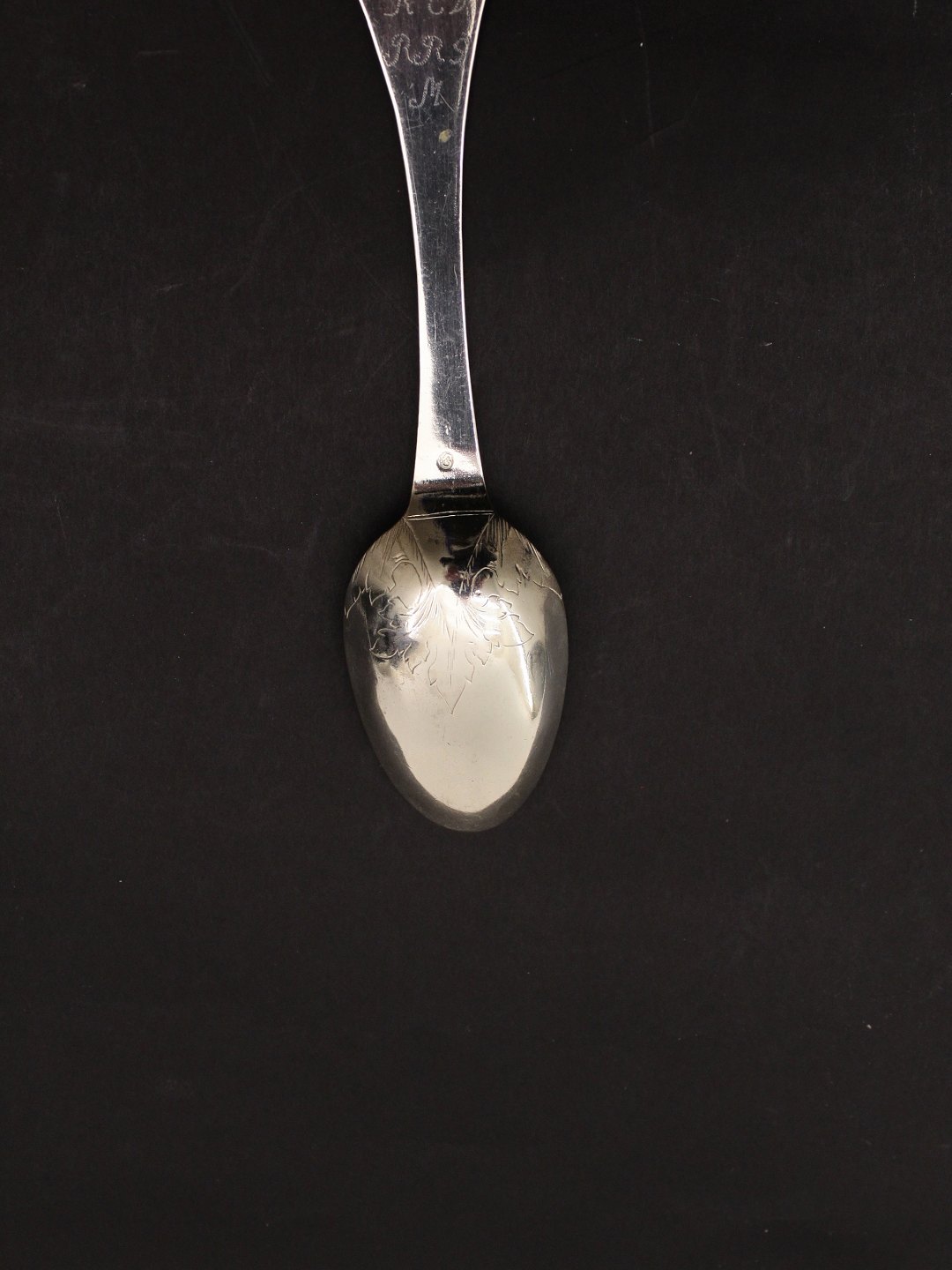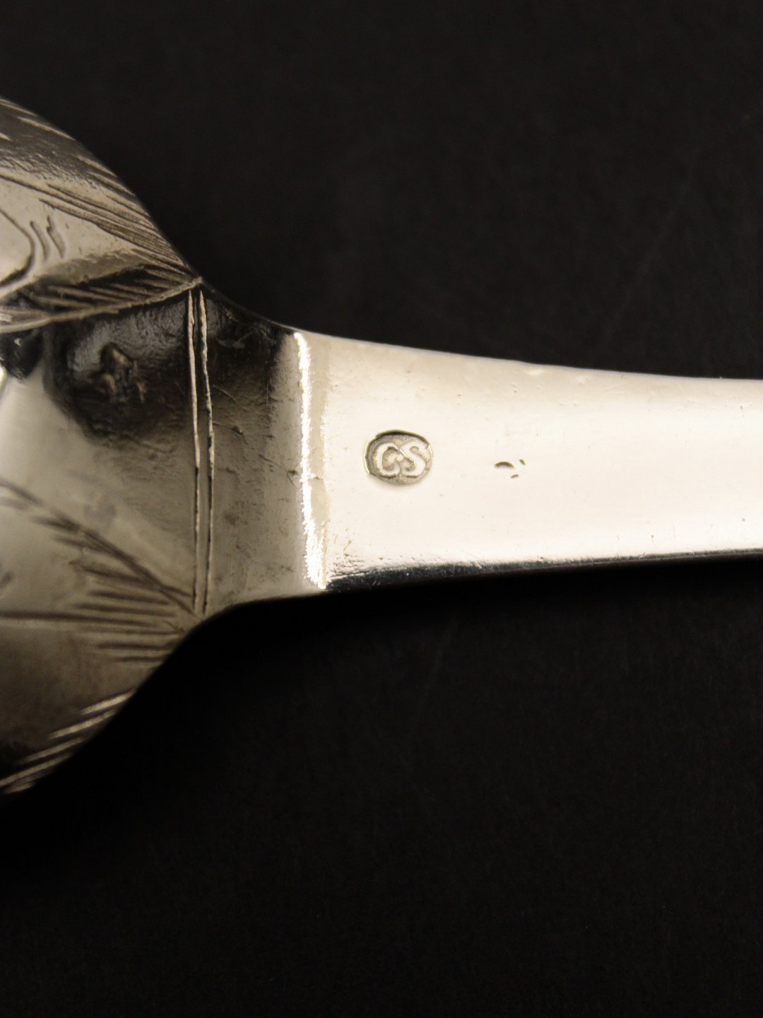 Beskrivelse: Barok dansk sølvske 19,5 cm. 18.årh. emne nr. 632406