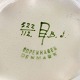 Fajancestel med dekoration af ranker af blåregn og blade på lys baggrund afsluttet med kant af runde blå pletter.