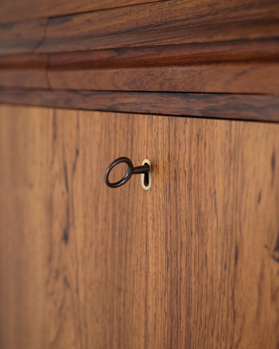Beskrivelse: Sekretær i palisander designet af Erling Torvits fra 1960’erne. Klassisk dansk møbel med skriveklap og opbevaring. Tidløst design.