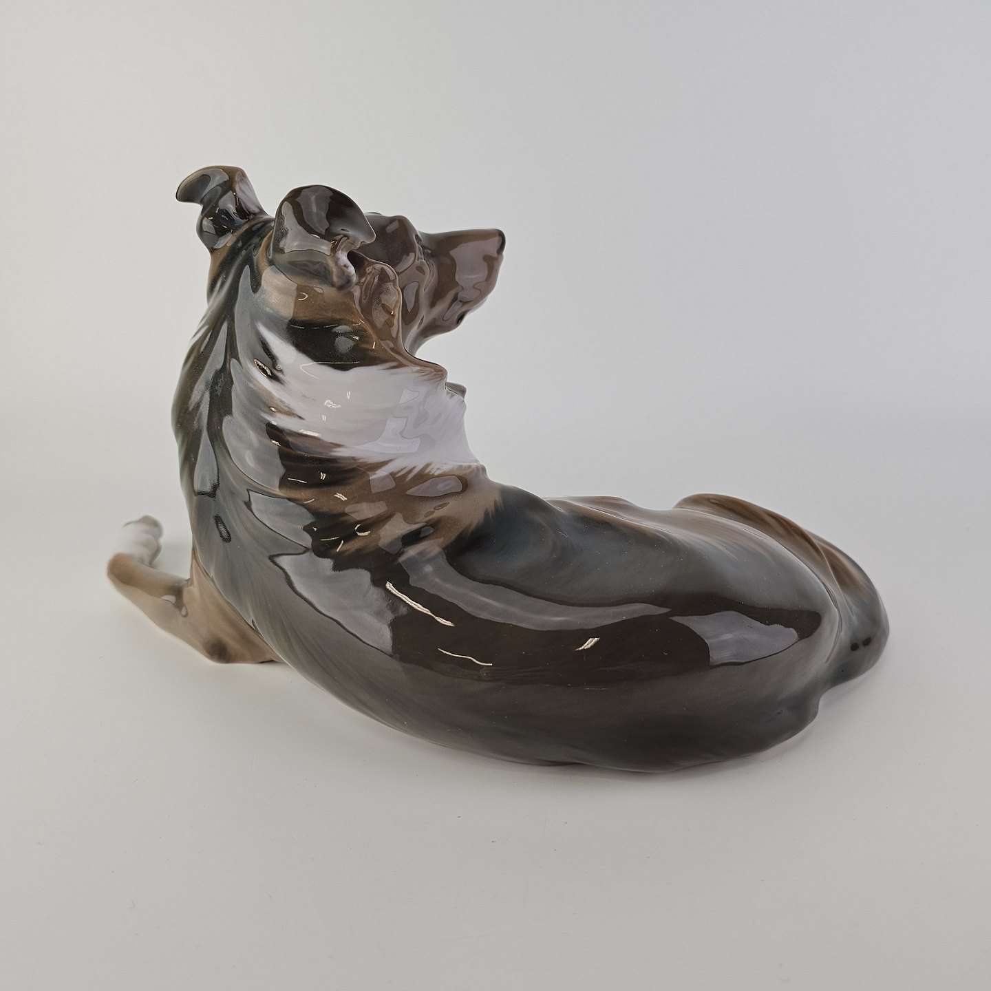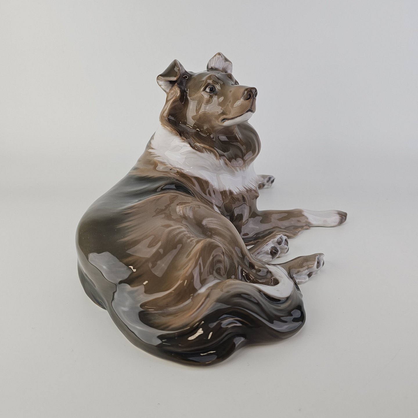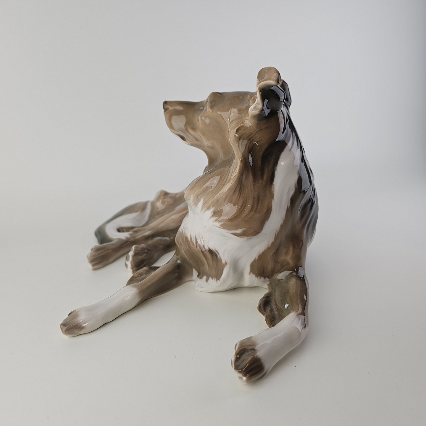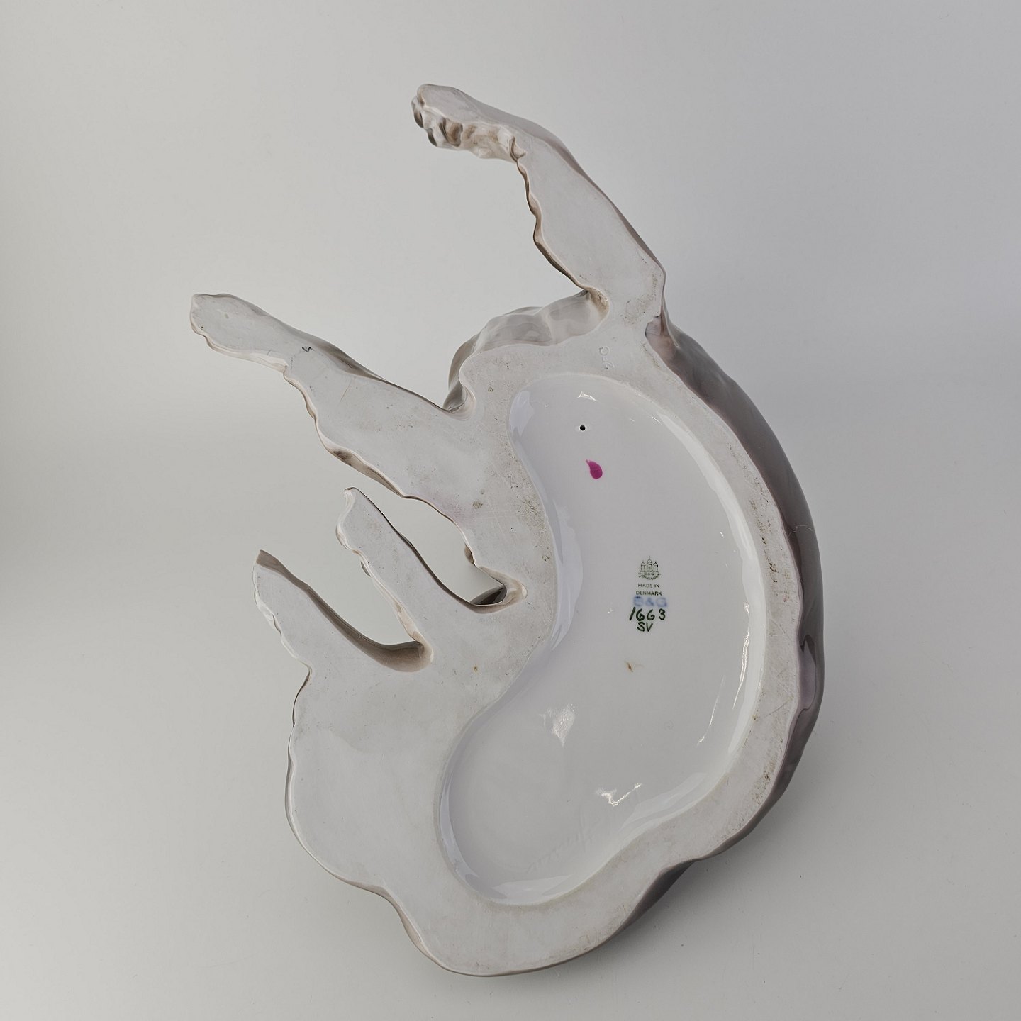 Beskrivelse: Figur i hvidt porcelæn med motiv af en liggende hund.
