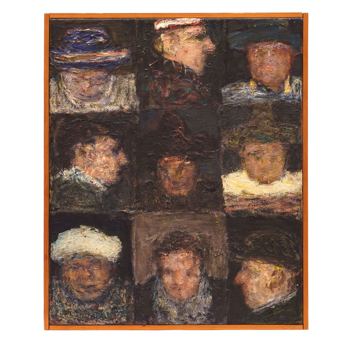 Peter Martensen maleri. Peter Martensen, f. 1953, olie på lærred. Betitlet "9 Klovner". Signeret og dateret 1978. Lysmål: 55x45cm. Med ramme: 57x47cm