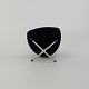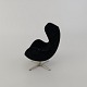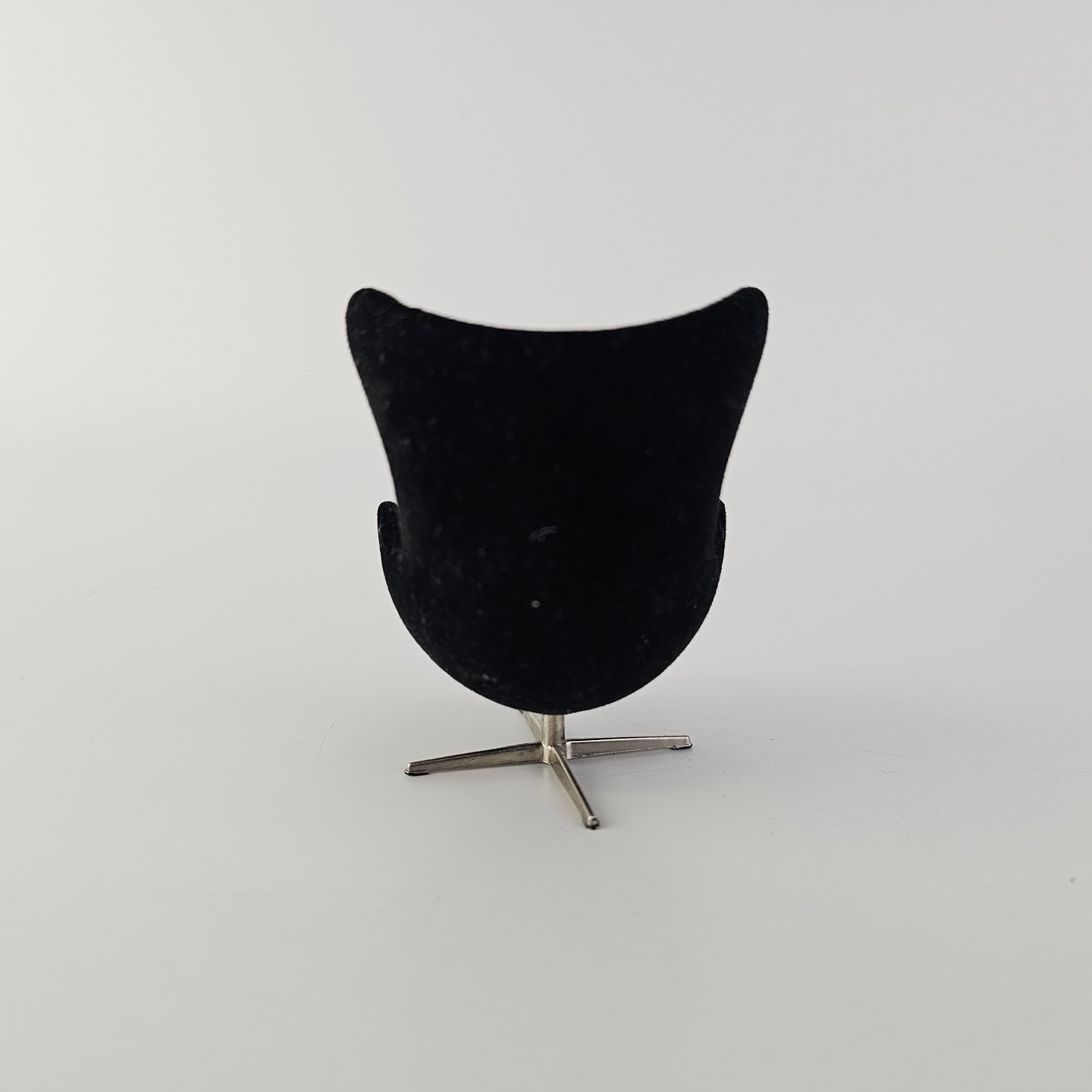 Beskrivelse: Miniature model af lænestolen Ægget polstret i sort stof