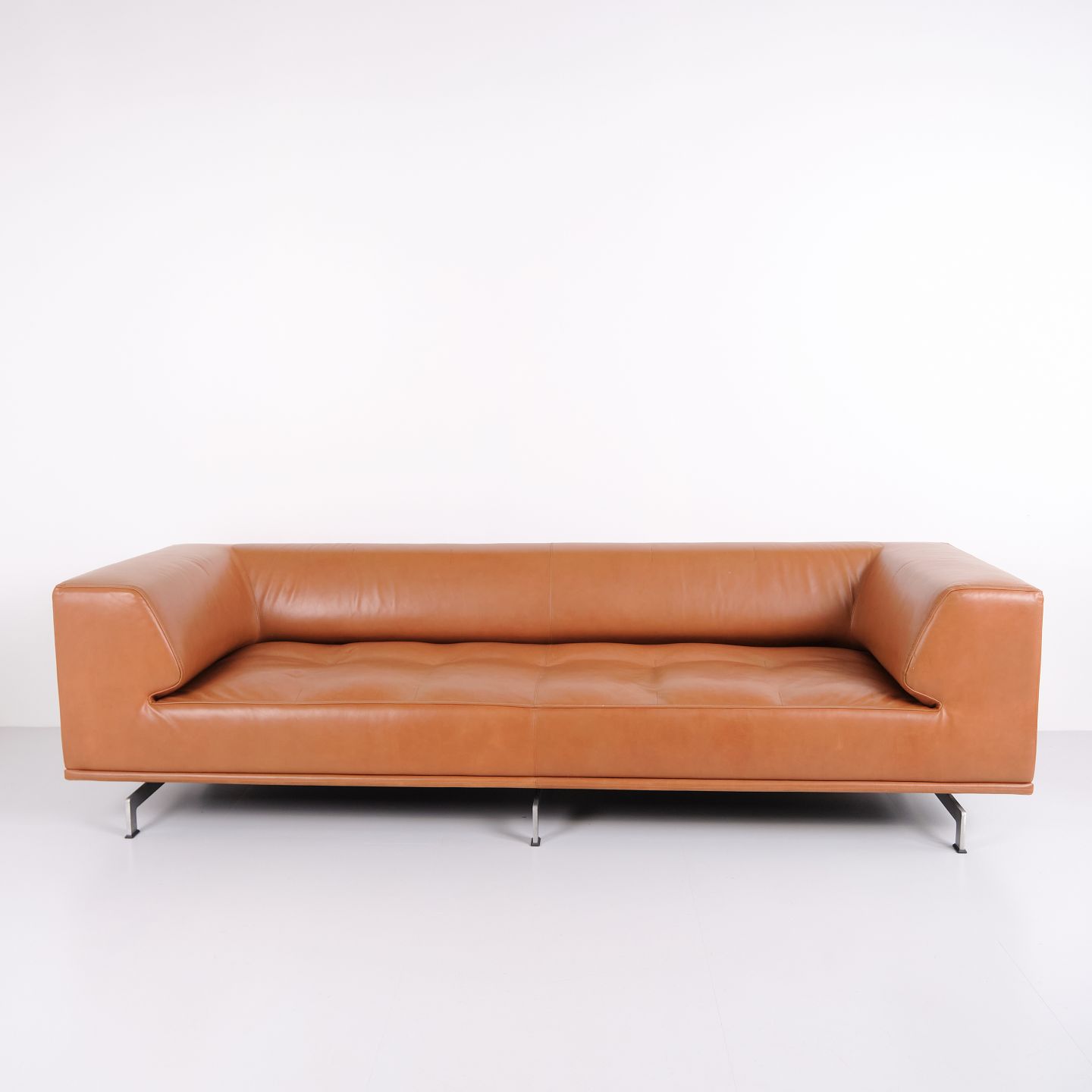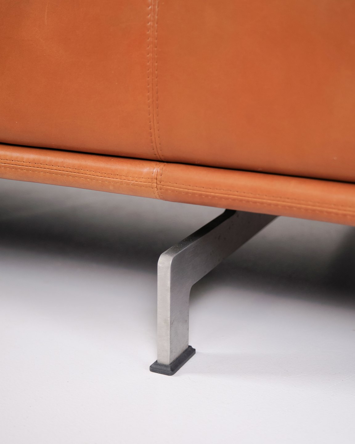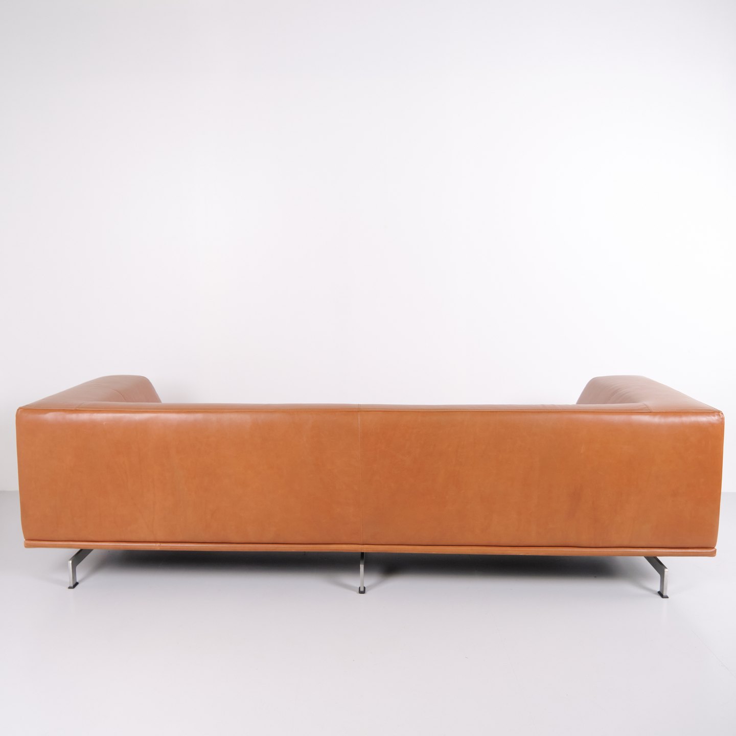 Beskrivelse: Erik Jørgensen Delphi sofa model EJ 450 designet af Hannes Wettstein i cognac læder med stel i børstet aluminium. Moderne skandinavisk design.
