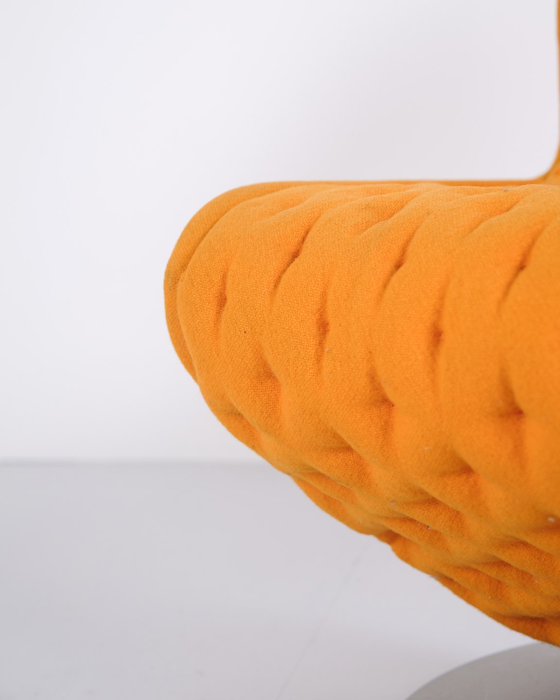 Beskrivelse: Stol fra 1-2-3 systemet designet af Verner Panton og fremstillet af Fritz Hansen i 1970’erne. Stolen har et enkelt og stramt formsprog med fokus på komfort og funktion, typisk for Pantons arbejde, hvor moderne materialer og innovative konstruktioner spiller en central rolle.