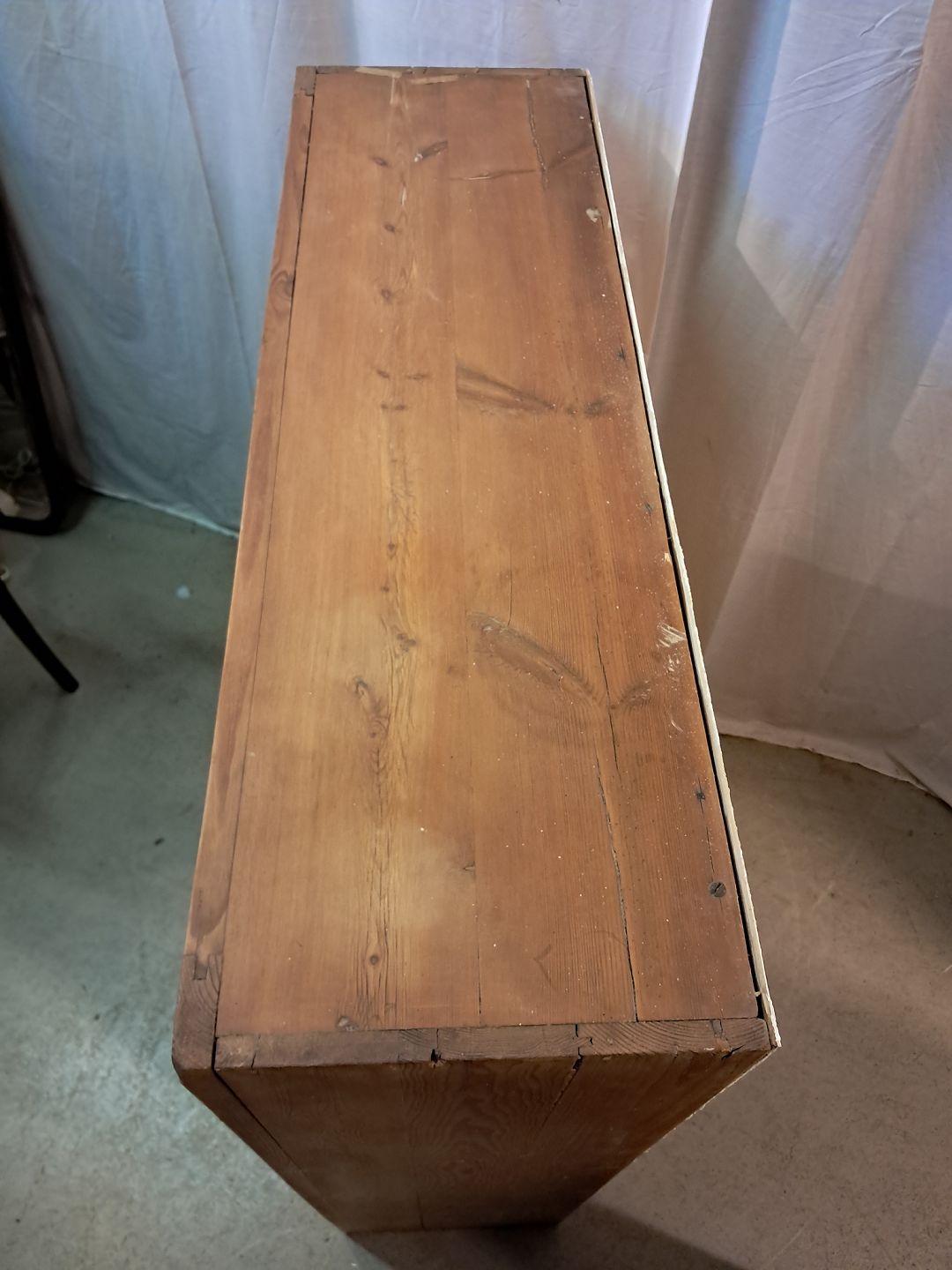 Beskrivelse: Gammelt køkkenskab i massivt fyrretræ, fra 1920erne.
