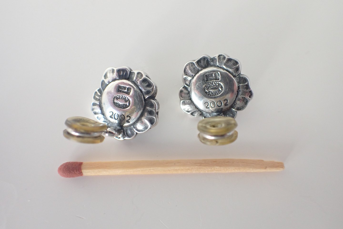 Georg Jensen - blomsterøreklips i sterling sølv med granater.