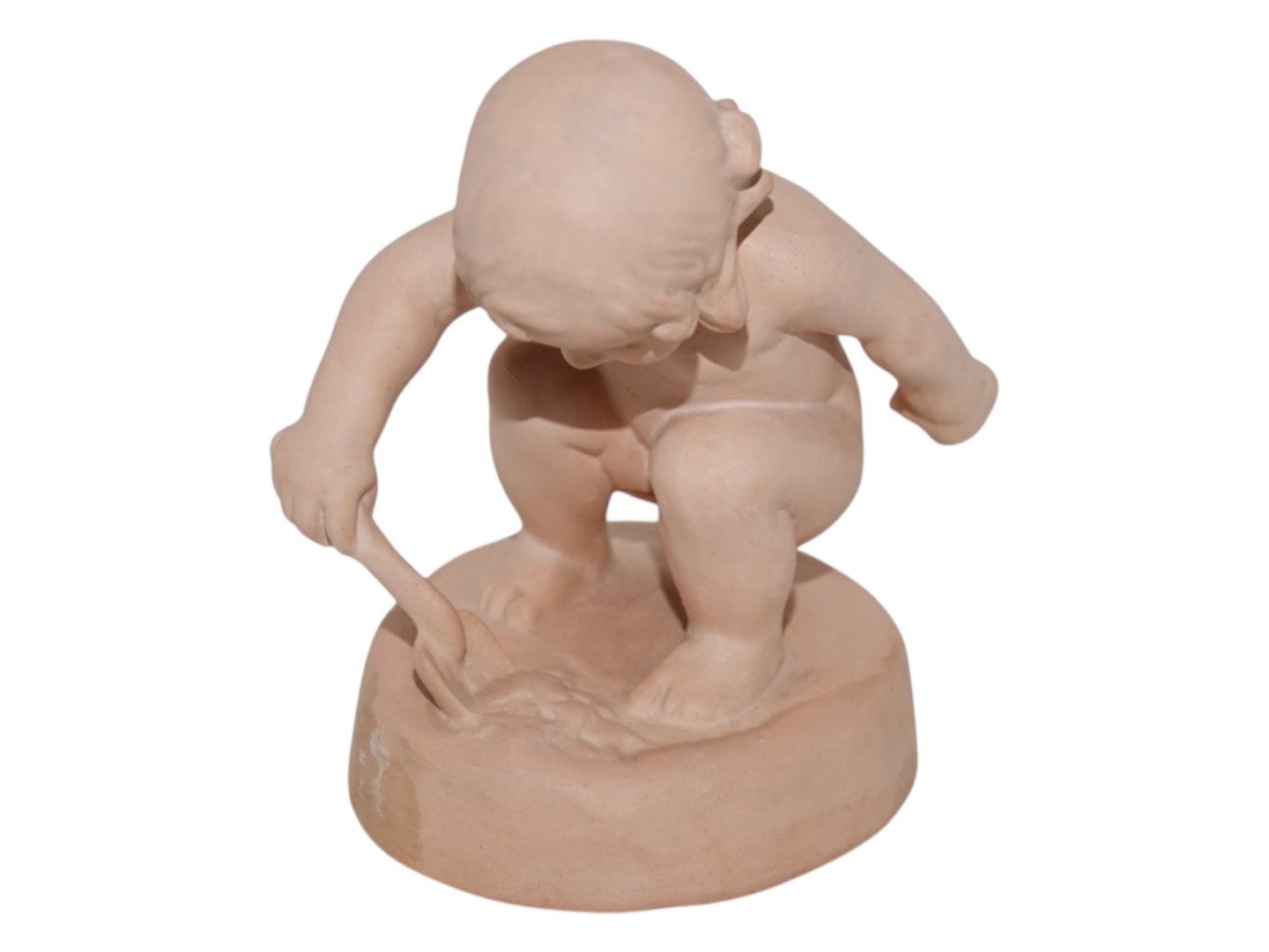 Beskrivelse: Ipsen terracotta figur af pige med sandskovl.