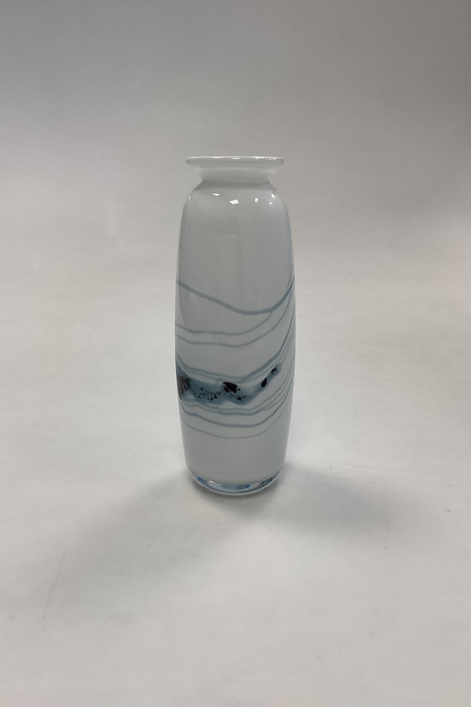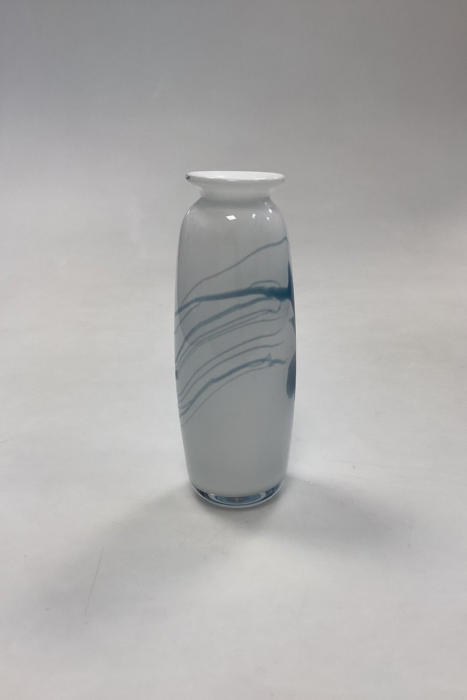 : Holmegaard Atlantis Vase. Hvid med blå dekoration. Designet af Michael Bang.