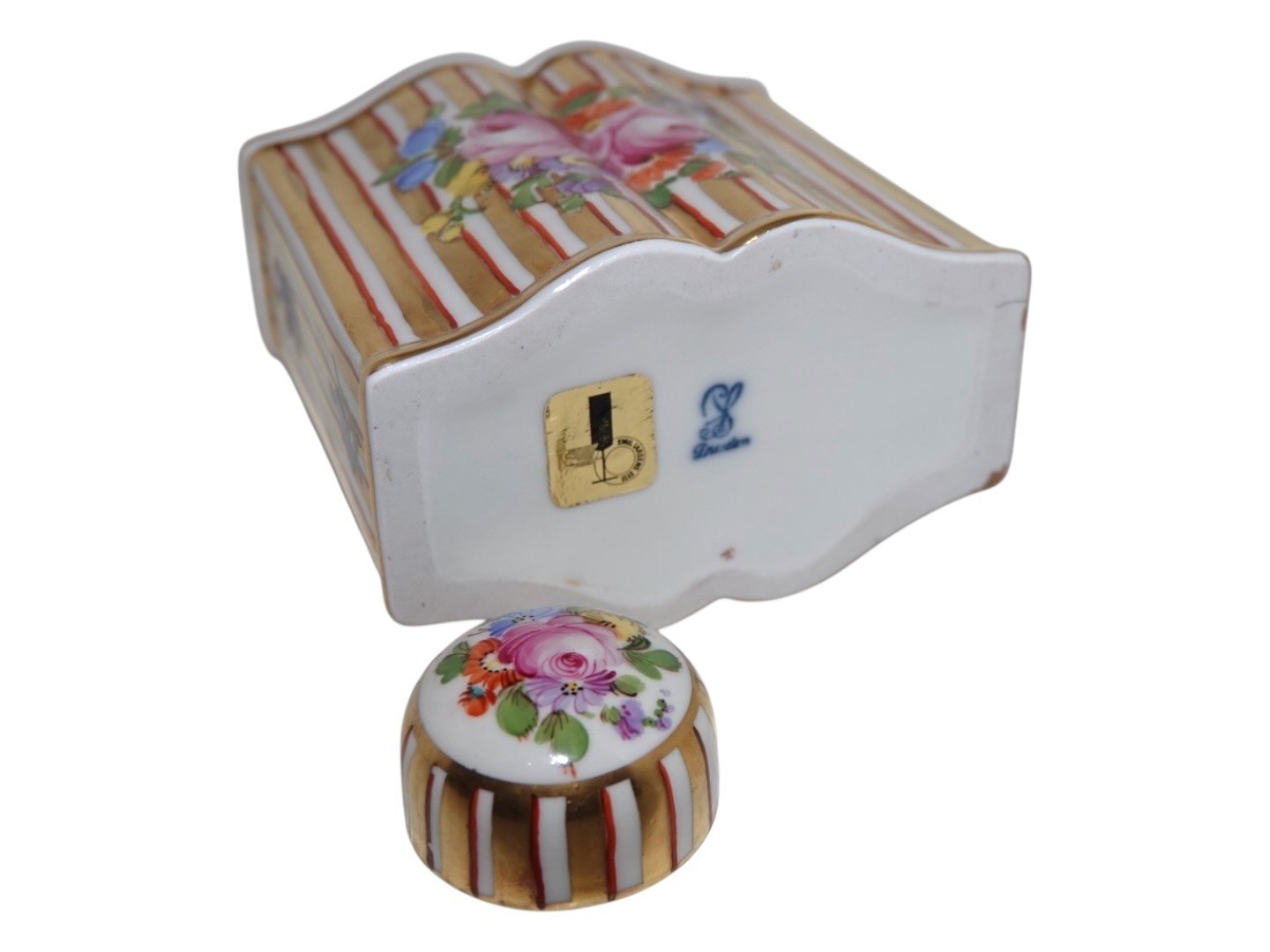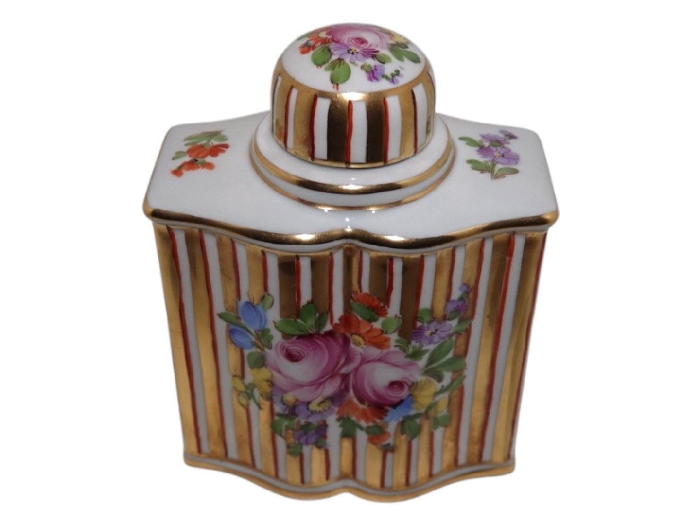 Beskrivelse: Dresden porcelæn, tedåse med Saksisk Blomst dekoration.