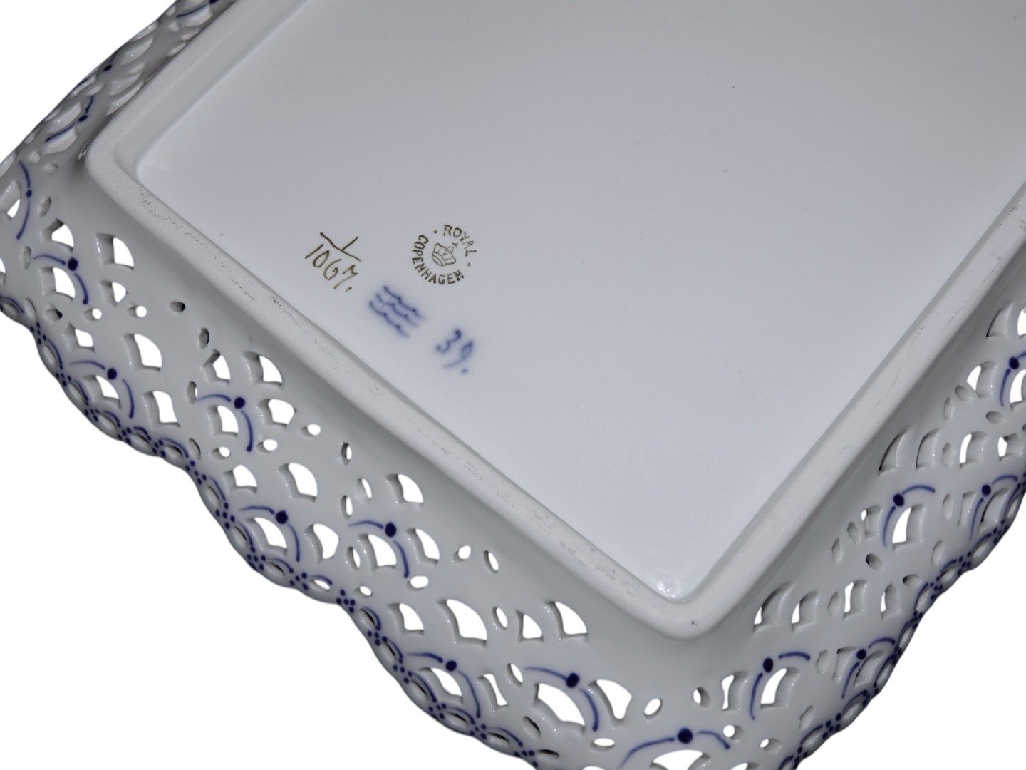 Beskrivelse: Royal Copenhagen Musselmalet Helblonde, stort og meget sjældent isfad / bakke.