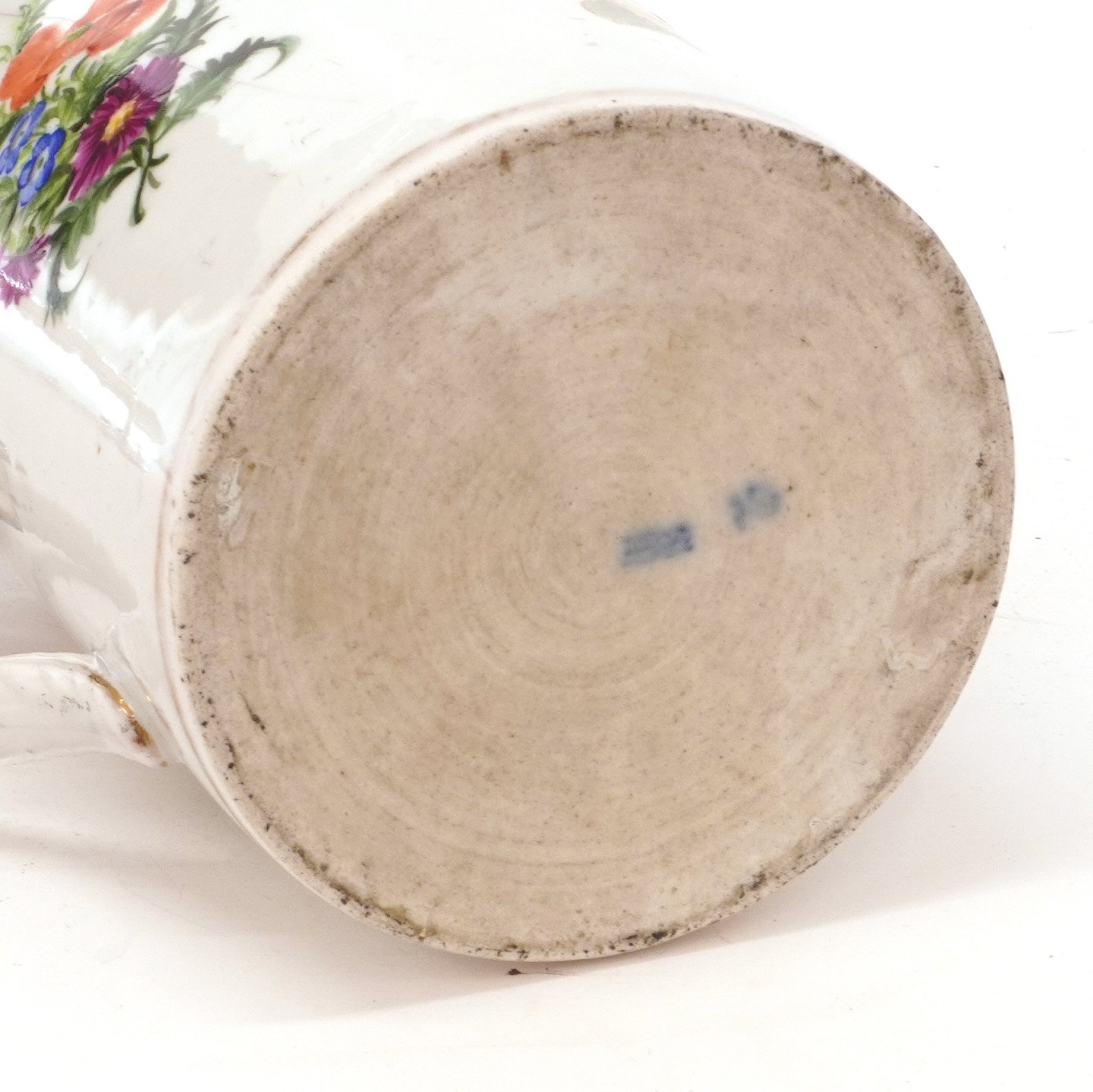 Beskrivelse: Tidligt Royal Copenhagen porcelænskrus med sølvlåg af Detlef Pape, København, af 1750erne