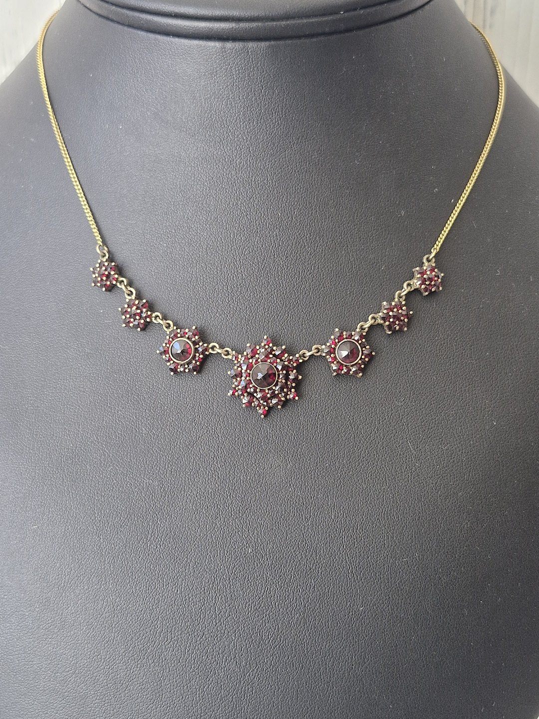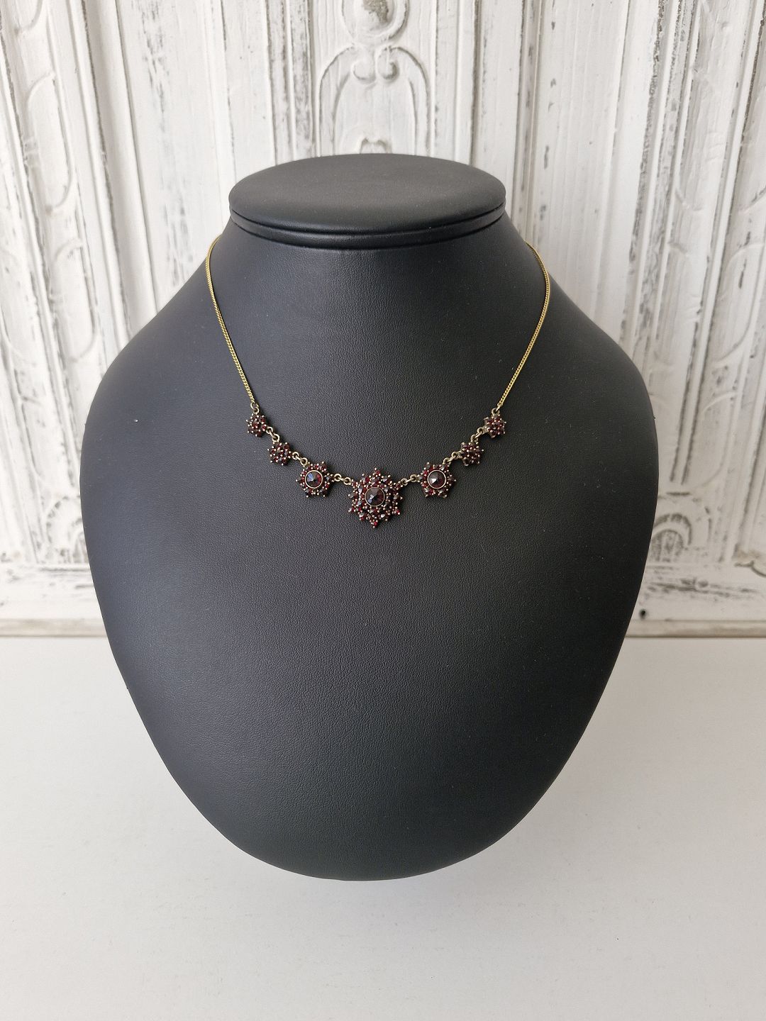 Beskrivelse: Vintage granat collier af forgyldt metal