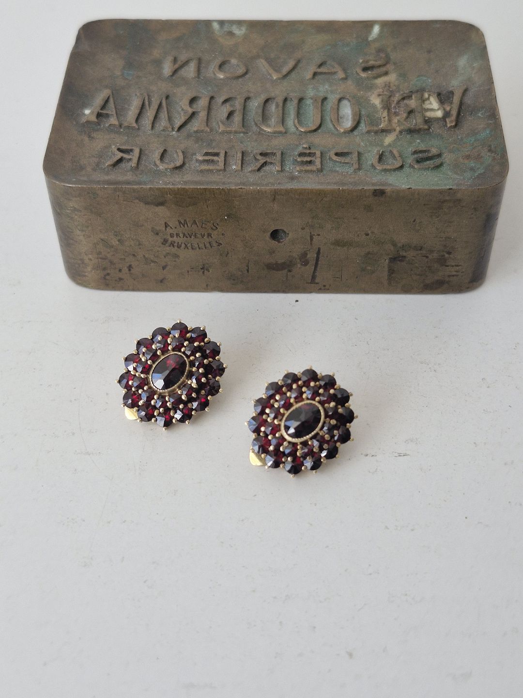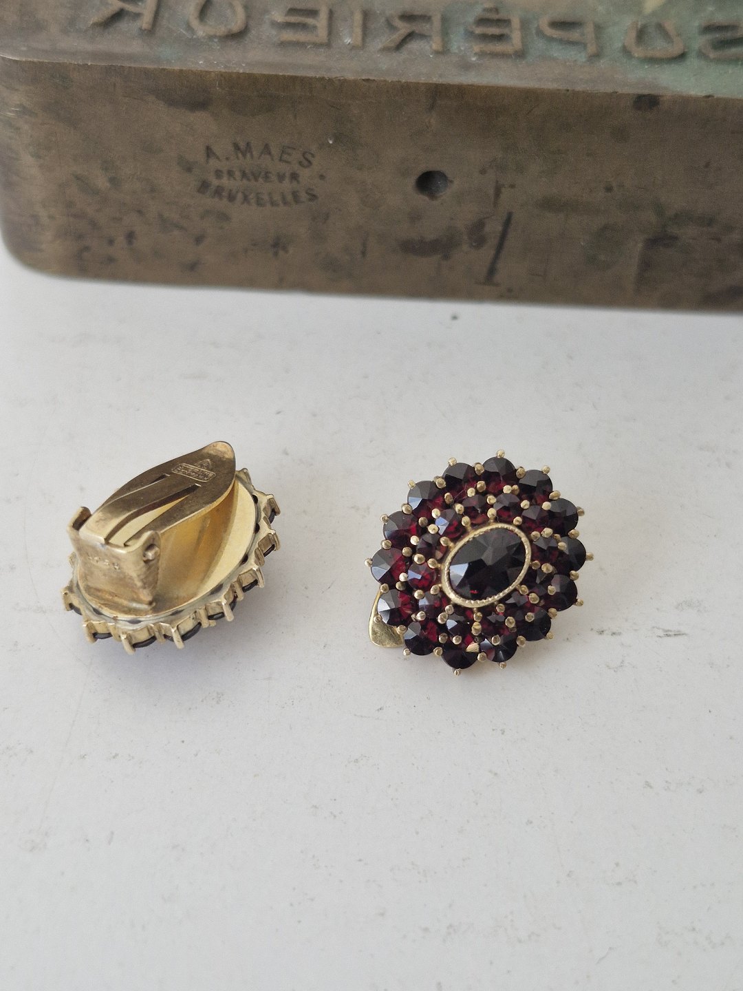 Par vintage granat øreklips i forgyldt sterlingsølv af A.Michelsen