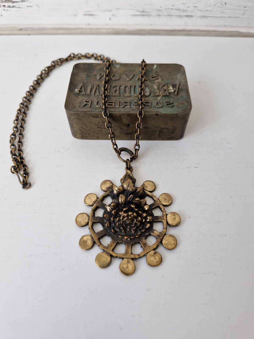 Beskrivelse: Vintage bronze halssmykke, vedhænget er udført som krysantemum