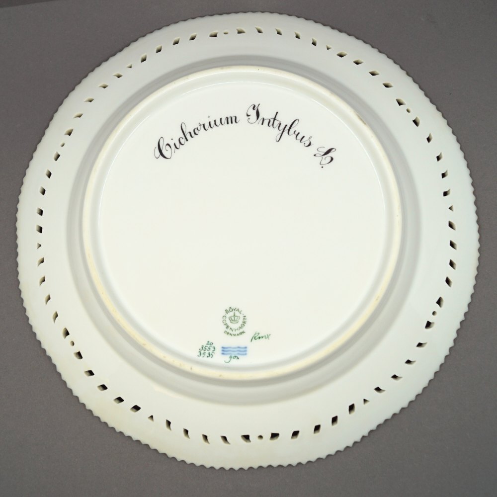 Beskrivelse: Royal Copenhagen, Flora Danica porcelæn; Middagstallerken #3553/3535 med gennembrudt kant.