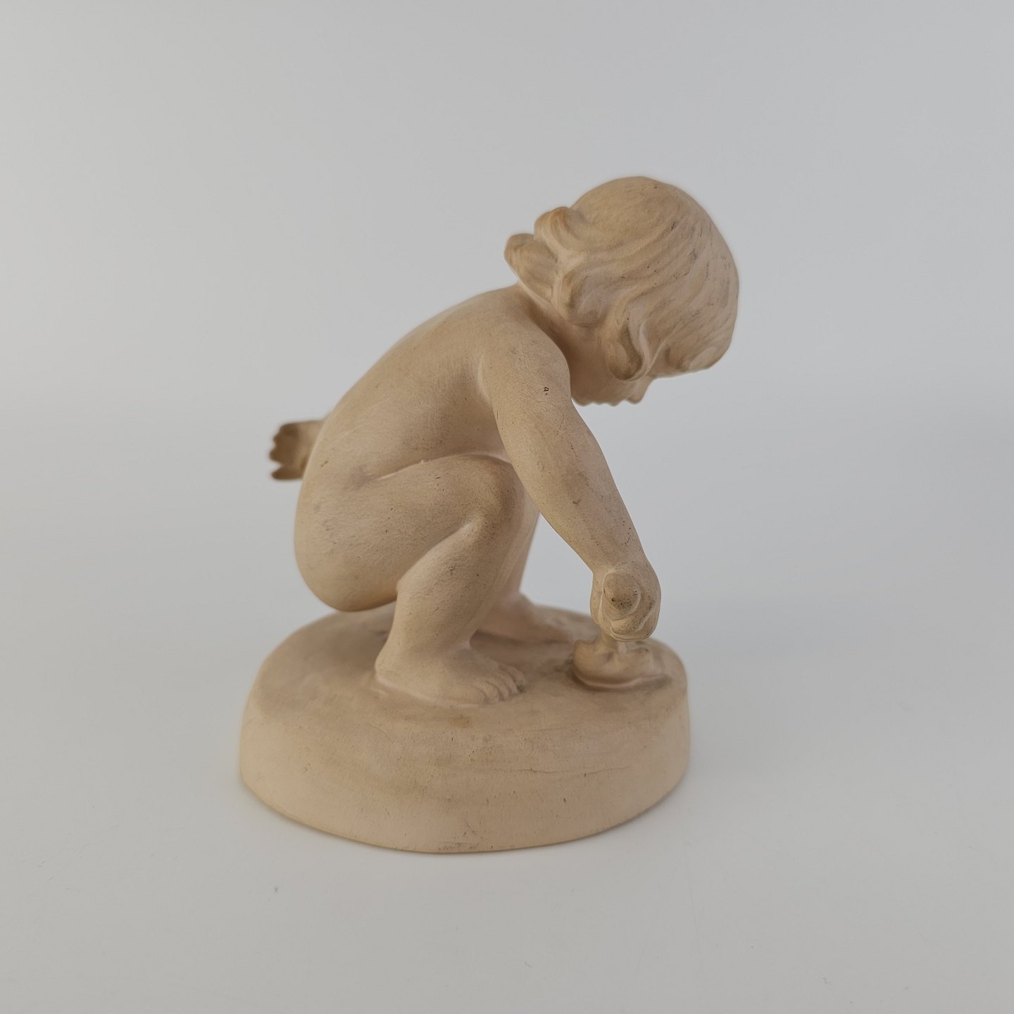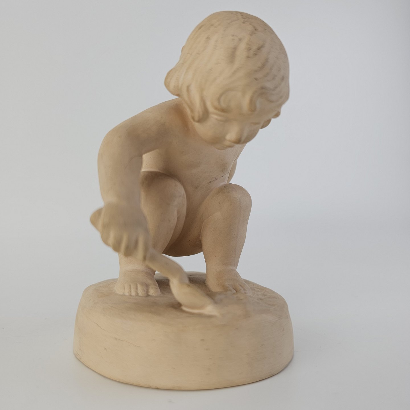 Beskrivelse: Figur i terrakotta af et barn med en skovl. Nr. 43