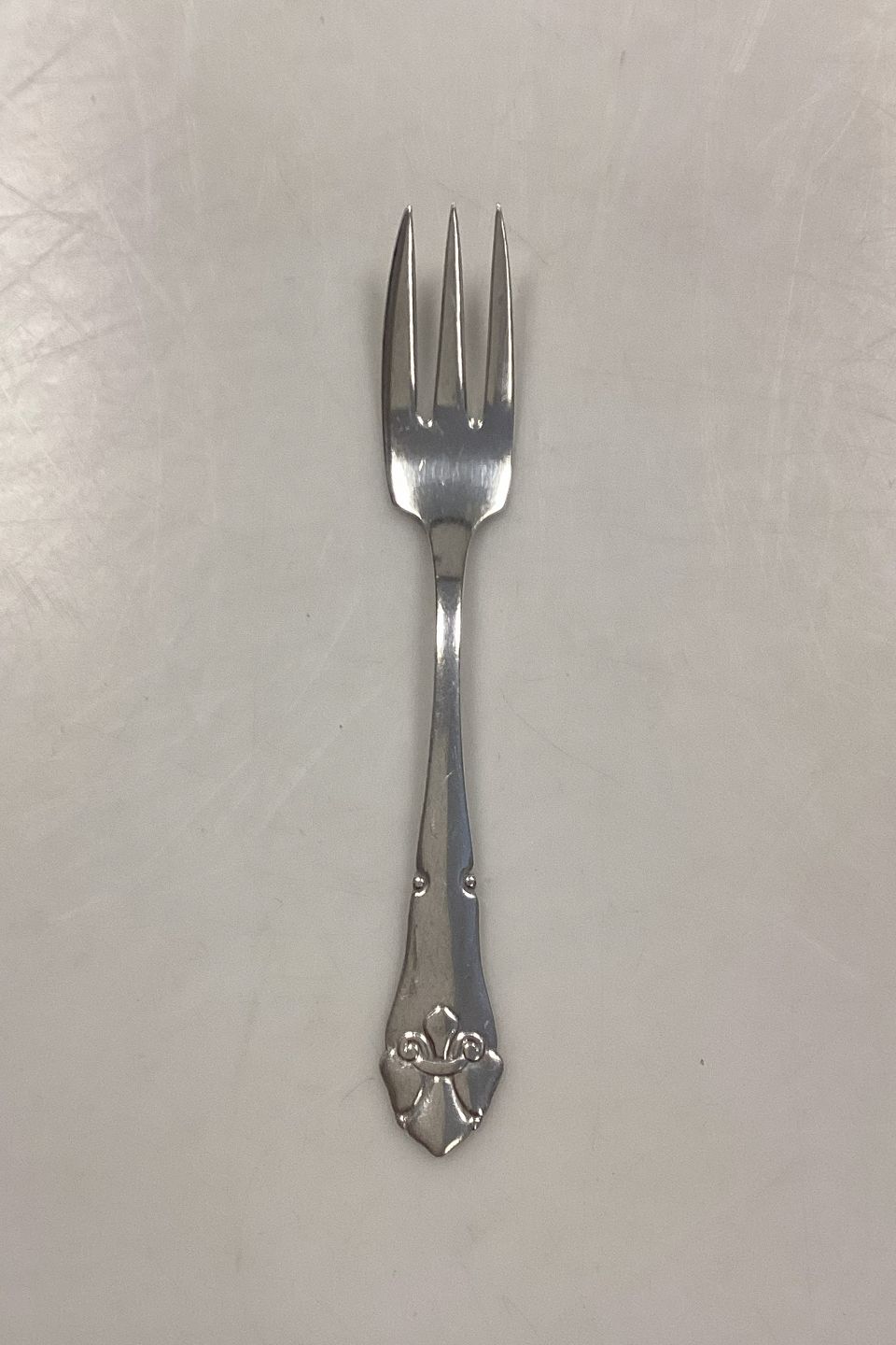 Beskrivelse: O. V. Mogensen Fransk Lilje Sølvplet Kagegaffel