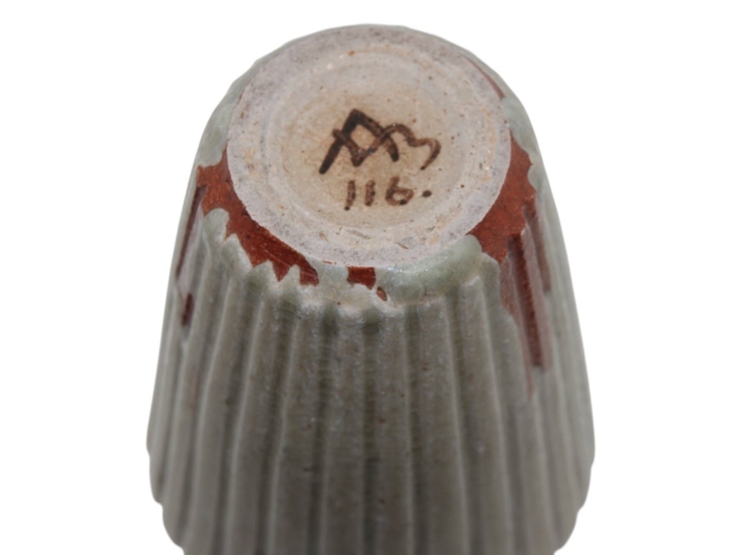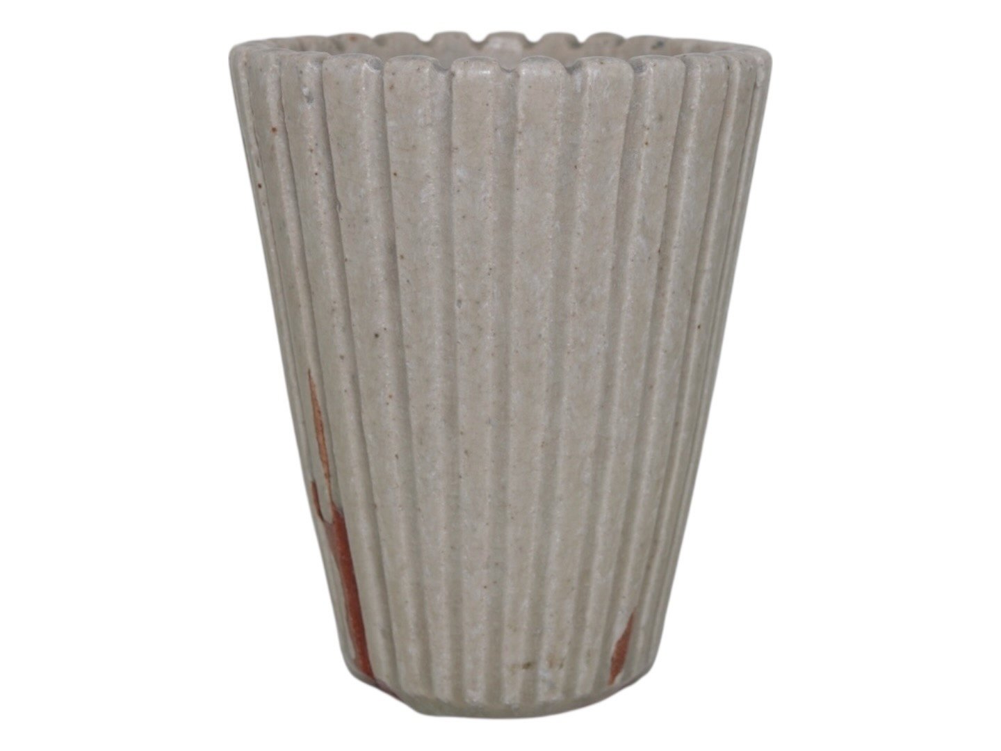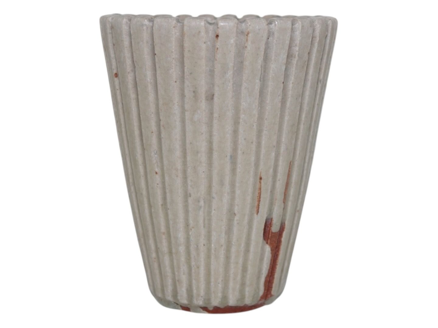 Beskrivelse: Arne Bang keramik, vase med riller.