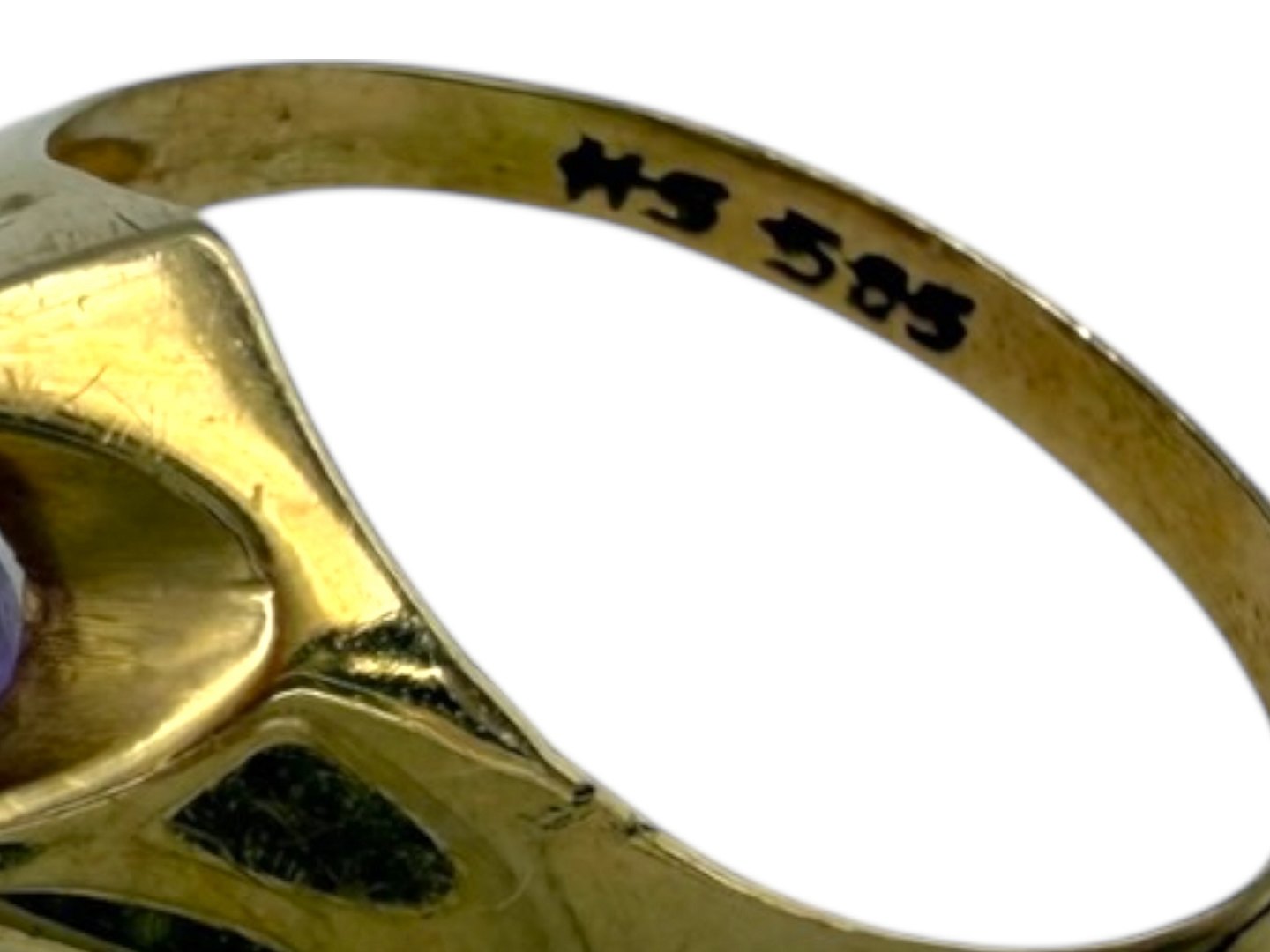 Beskrivelse: Herman Siersbøl, 14 karat guld ring med lilla ametyst.
