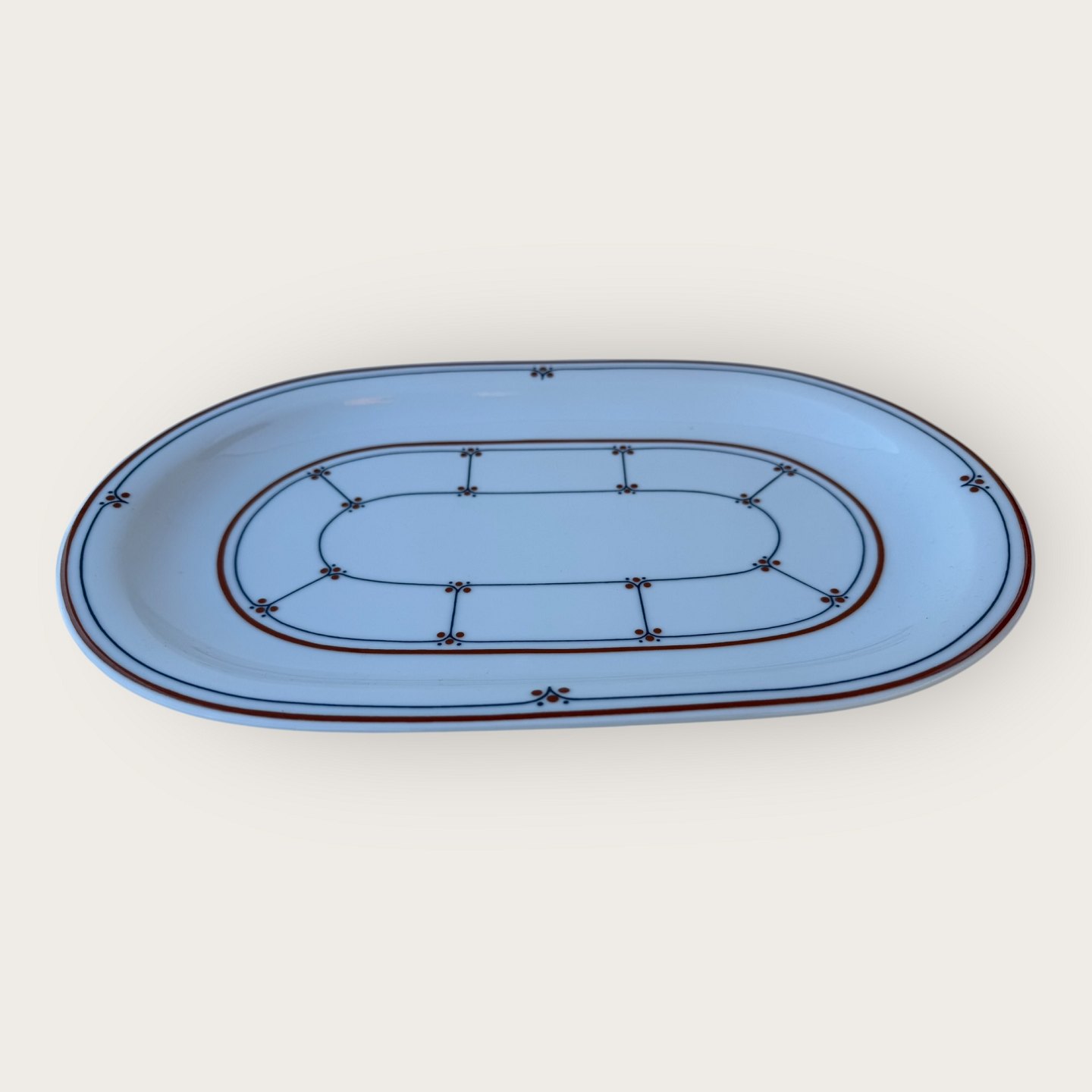 Beskrivelse: Bing & Grøndahl, Tivoli, Ovalt serverings fad, #315, 36x23 cm, 1. sortering, Design Martin Hunt *Pæn stand*
