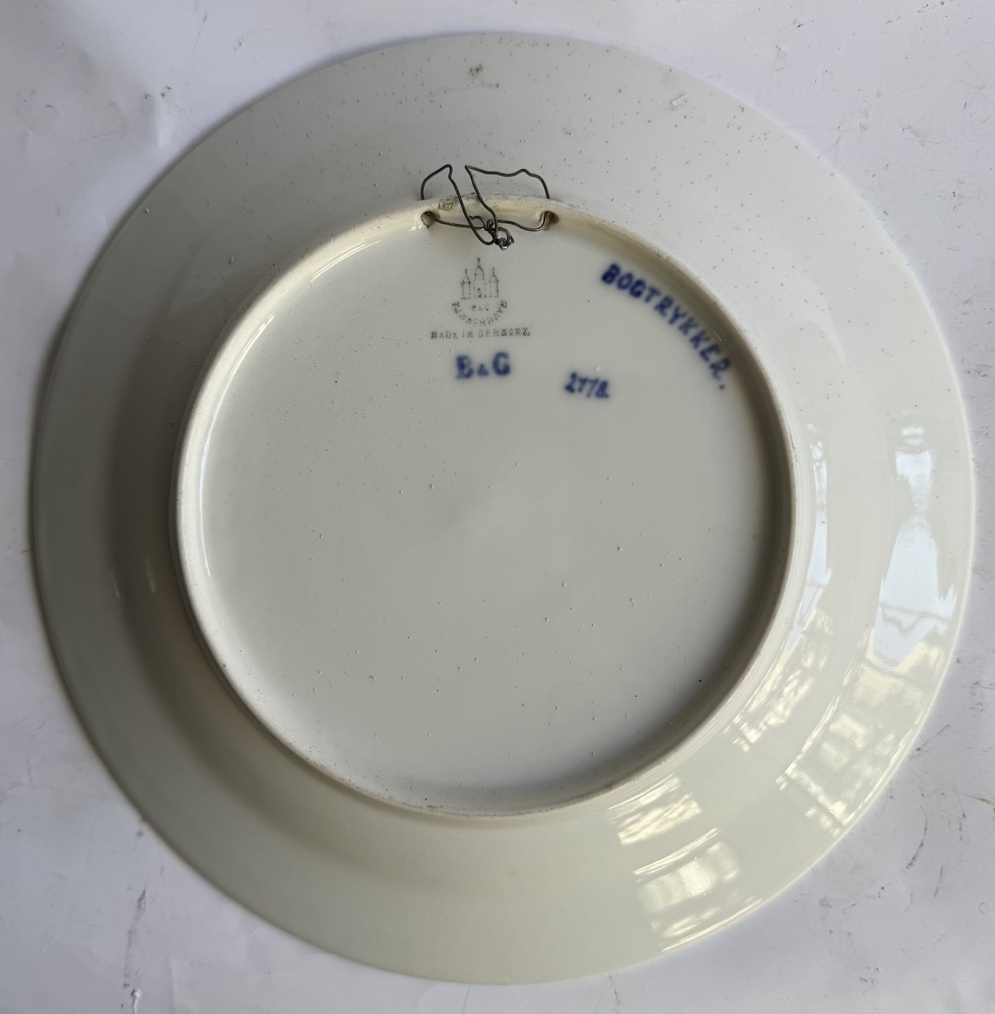Beskrivelse: Bing & Grøndahl porcelæns platte; Bogtrykkernes segl i København. Designet af Fanny Garde. Har lidt "støv" på bagsiden øverst (se billeder). Ellers i fin stand. 1. sortering. Ingen skader eller reparationer. Ø. 24 cm.