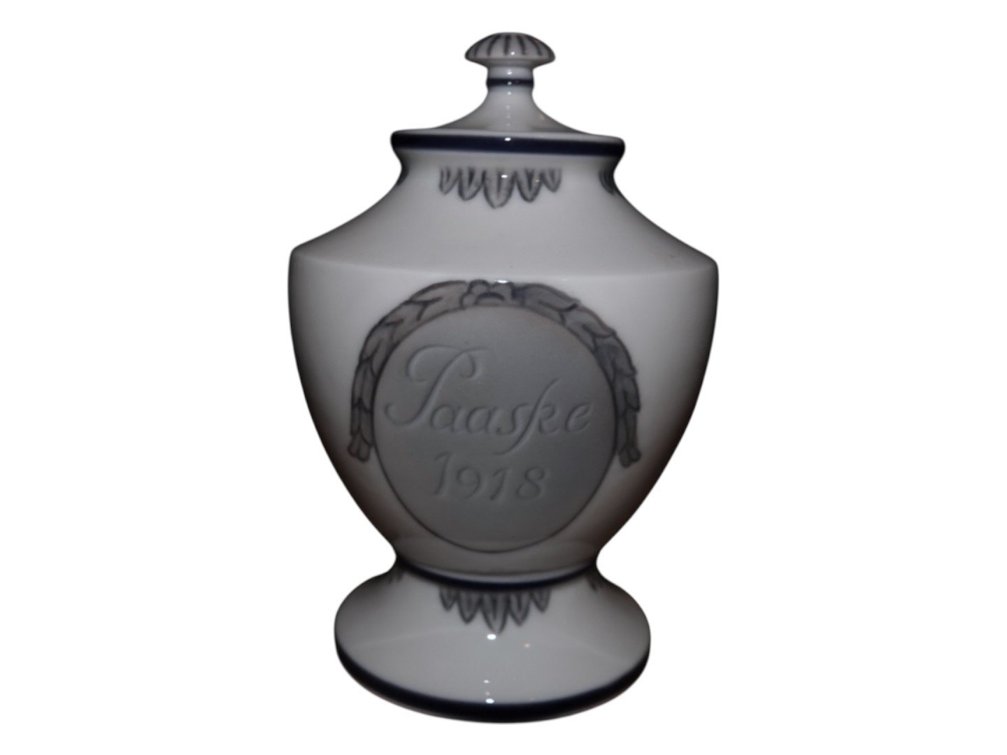 Beskrivelse: Royal Copenhagen Påskevase med låg fra 1918.
