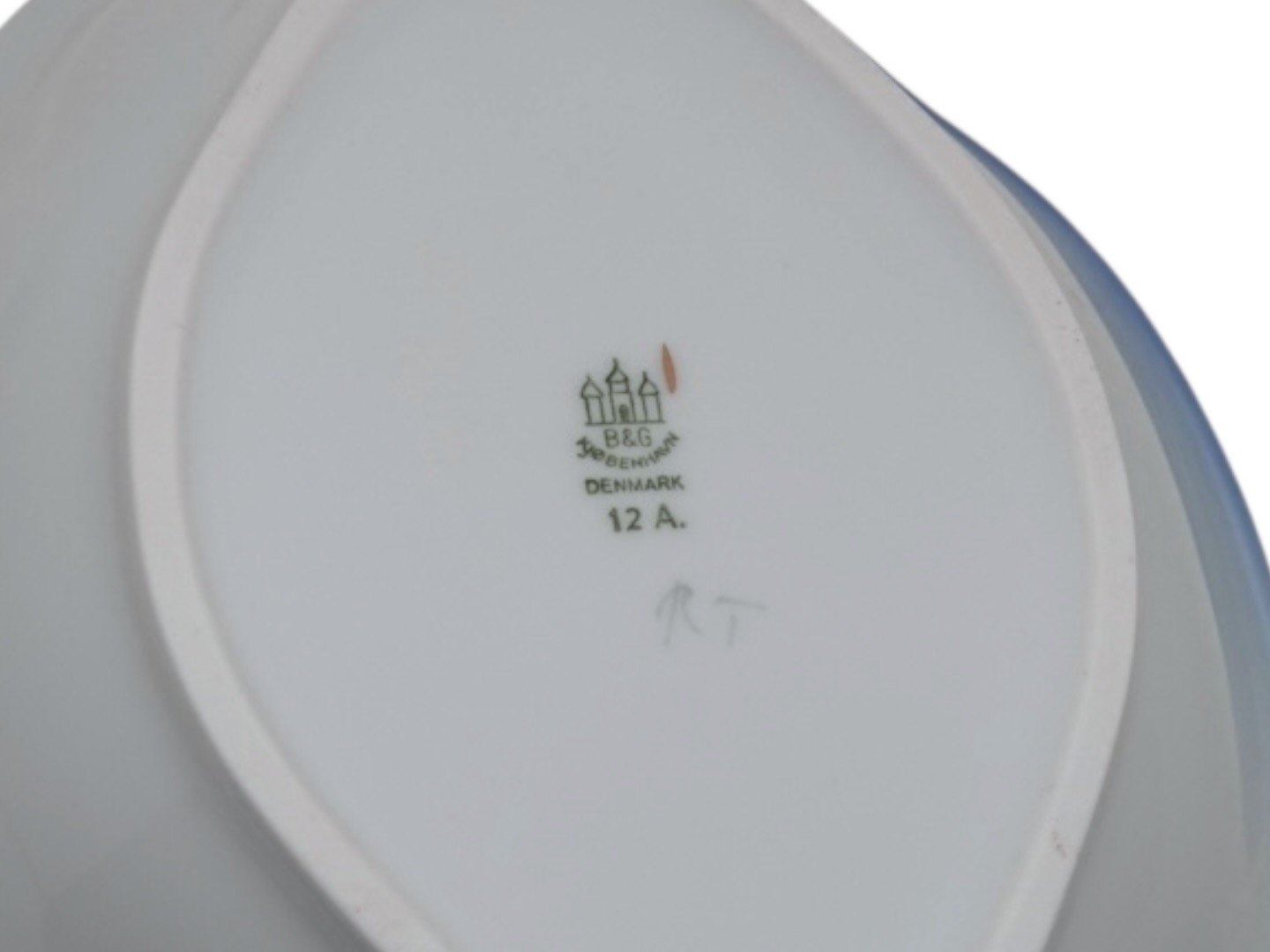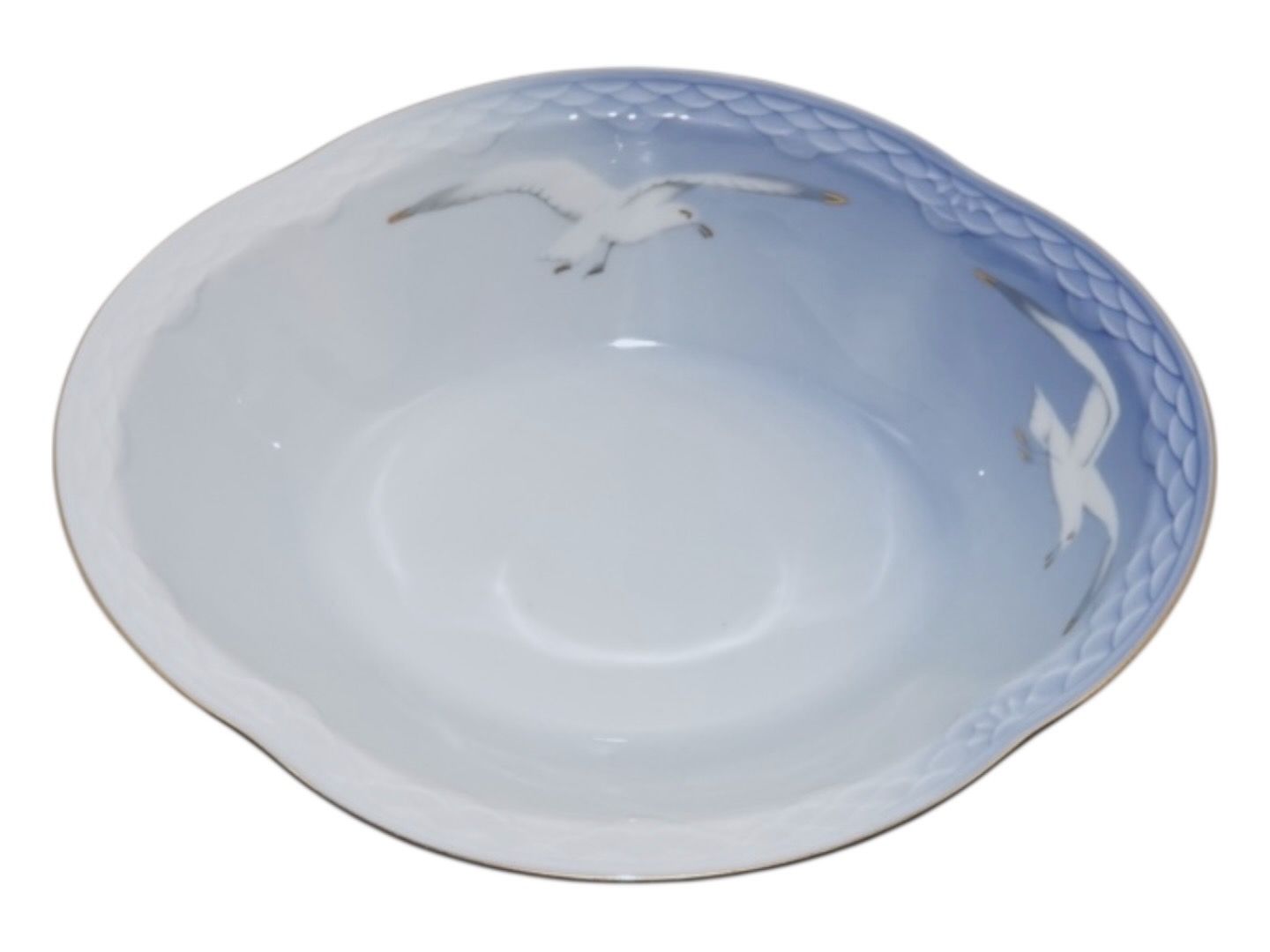 Beskrivelse: Bing & Grøndahl Måge med guldkant, lille oval skål.