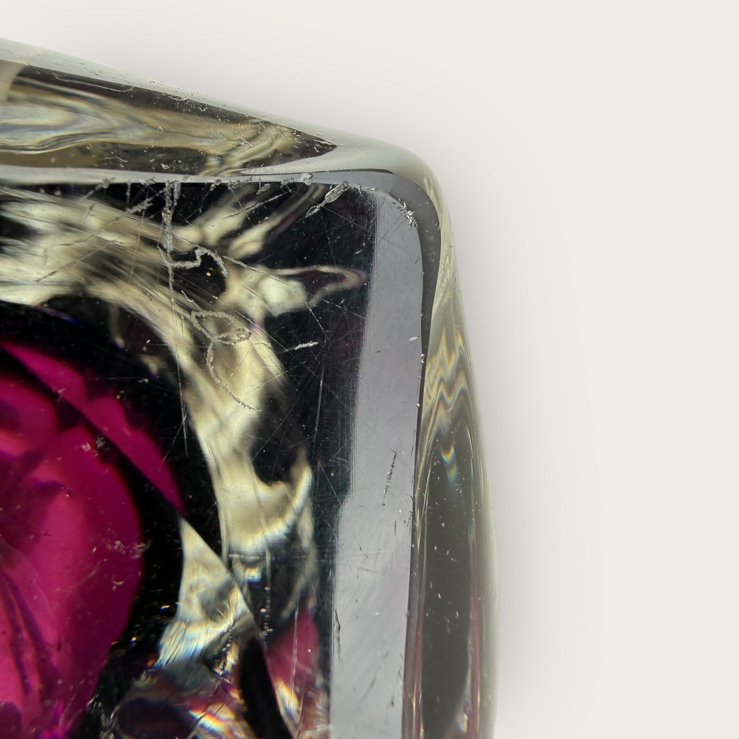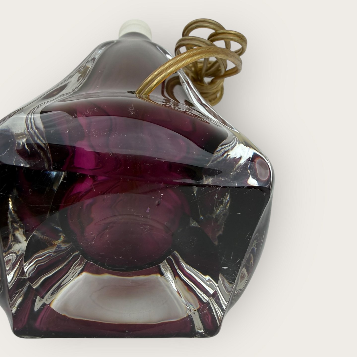 Beskrivelse: Glas bordlampe, sandsynligvis designet af Carl Fagerlund for Orrefors, utydeligt signeret i bunden (se foto), Højde med fatning ca. 36cm *pæn stand*