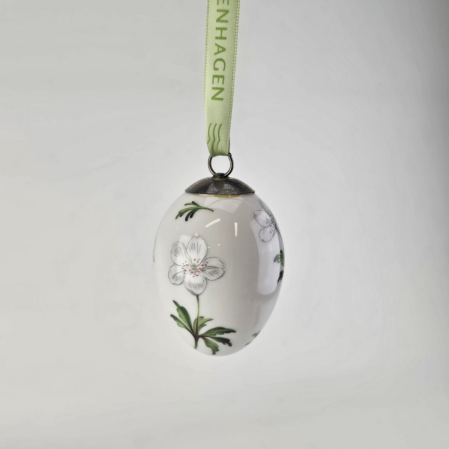 Beskrivelse: Påskeæg af kongelig porcelæn fra Forårskollektionen år 2009 med motiv af hvid anemone