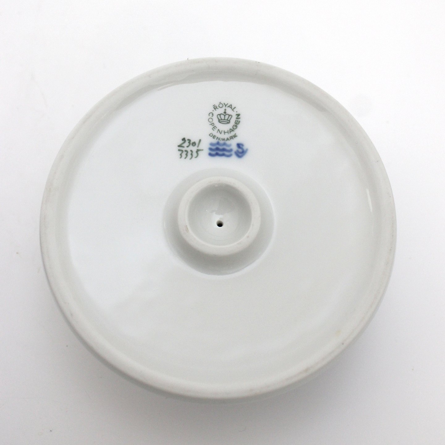Beskrivelse: Royal Copenhagen, Lysestager med blomstergren og sommerfugl i lyseblå porcelæn. Nr. 2301/3335. Diameter 12 cm. Højde 5,5 cm. I. sortering. Der er lidt farveforskel i den blå farve. Pris: 250 kr. stk. Lager: 2