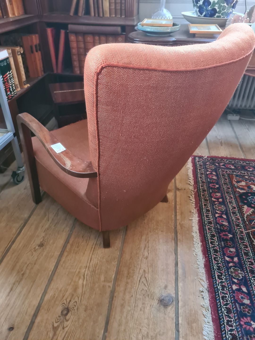Beskrivelse: Snedkermester lænestol fra 1960'erne i Cuba mahogni med stofbetrukket ryg og sæde. Fremstår god og stabil men med lettere brugsspor på især venstre armlæn og sæde. (Billede)