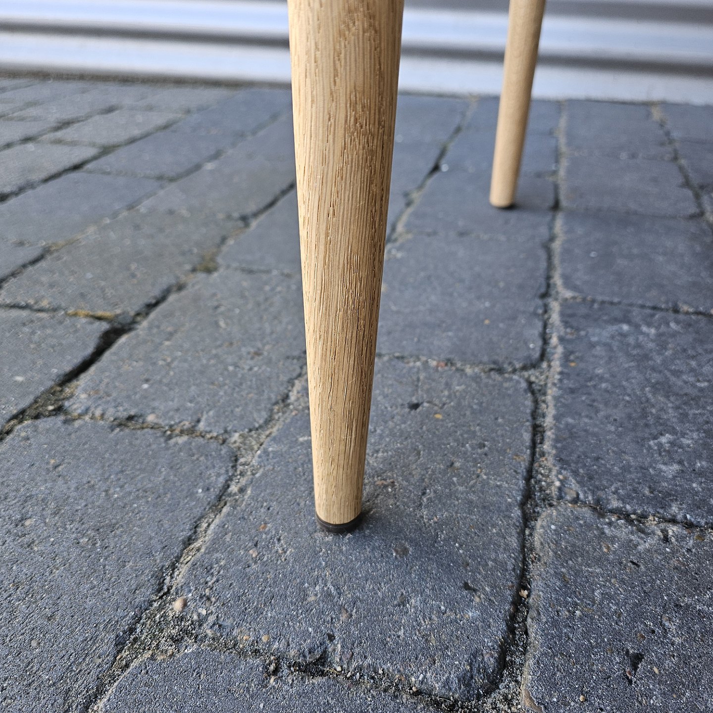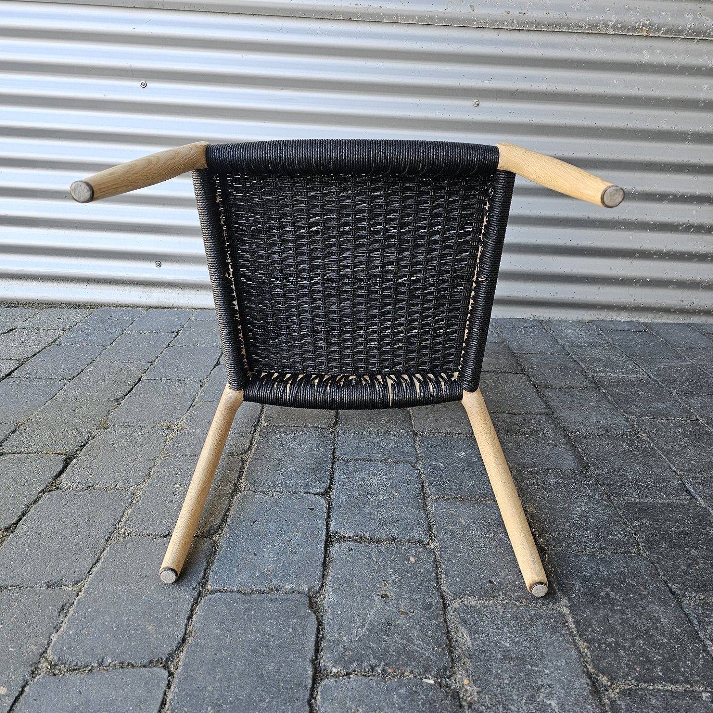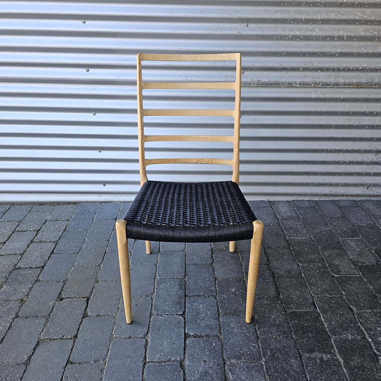 Beskrivelse: Niels Ole Møller spisebordsstol i eg med sort flettet sæde