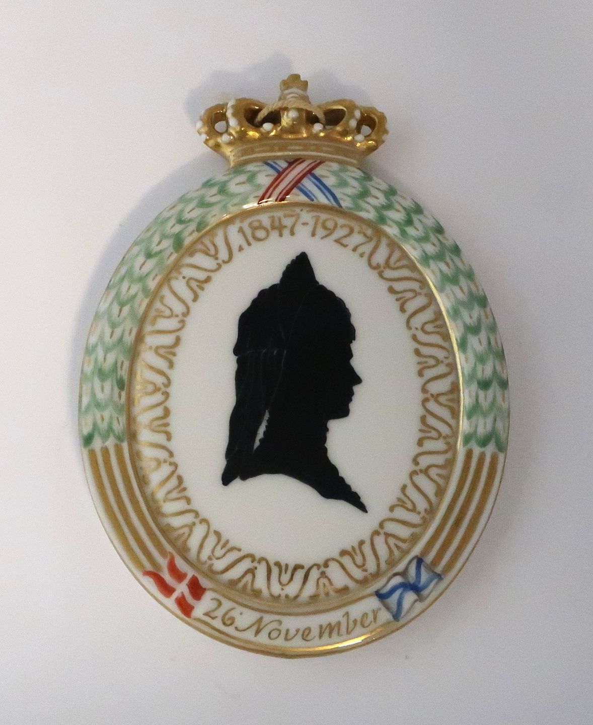 Royal Copenhagen. Silhouette platte. Tzarina Dagmar. 1927. Højde 12,6 cm. (1 sortering)