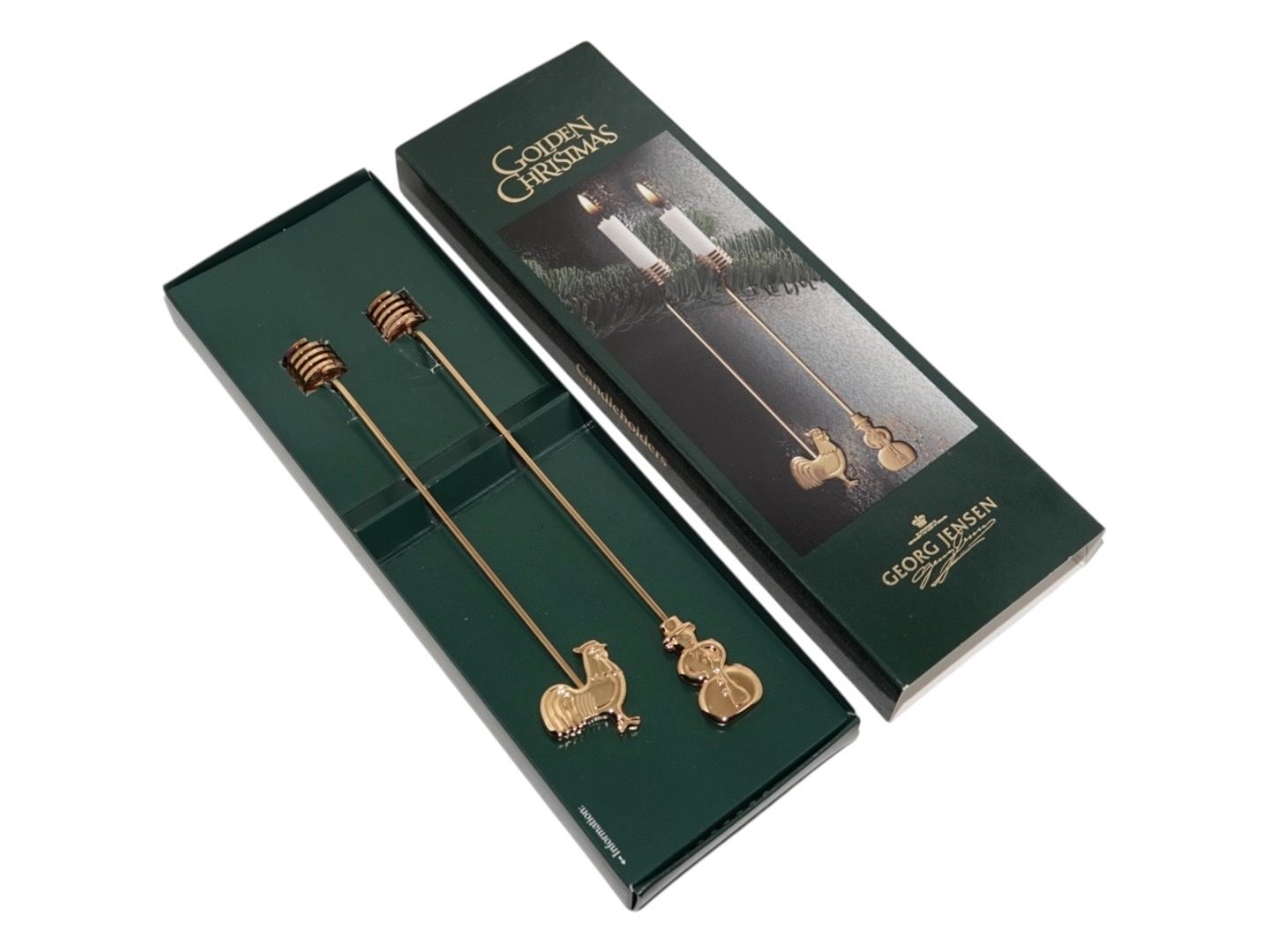 Beskrivelse: Georg Jensen Golden Christmas, lysholder med snemand og hane fra 1999.